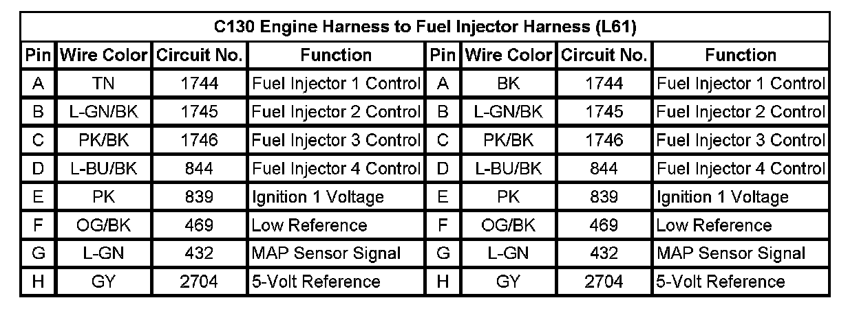 C130 Engine Harness to Fuel Injector Harness (L61)