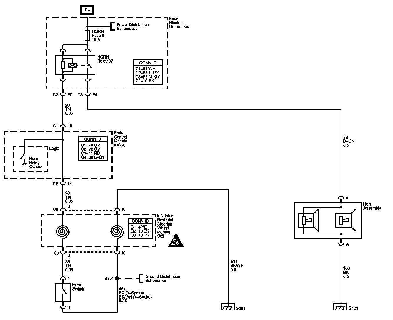The locations for the Connectors, Grounds, Splices, and Grommets shown within these diagrams can be found via their numbers at Vehicle Locations.