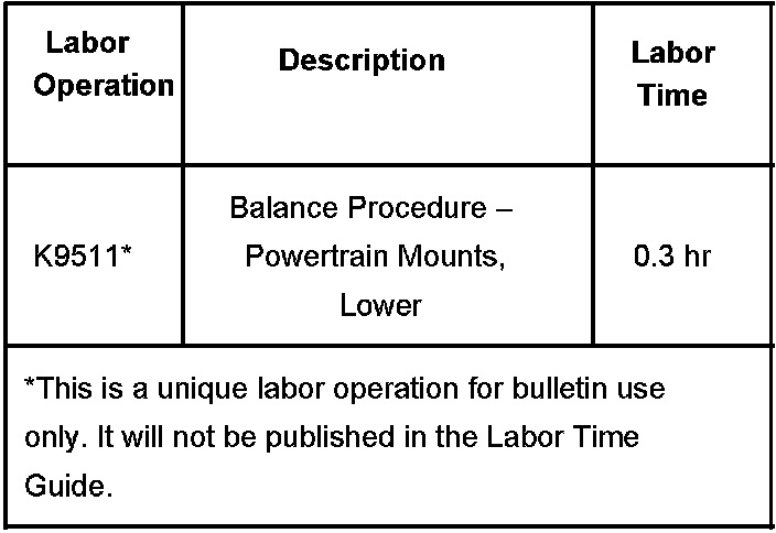 Refer to Powertrain Mount Balance - Lower Mount in SI and follow the balance procedure for the lower powertrain mounts.