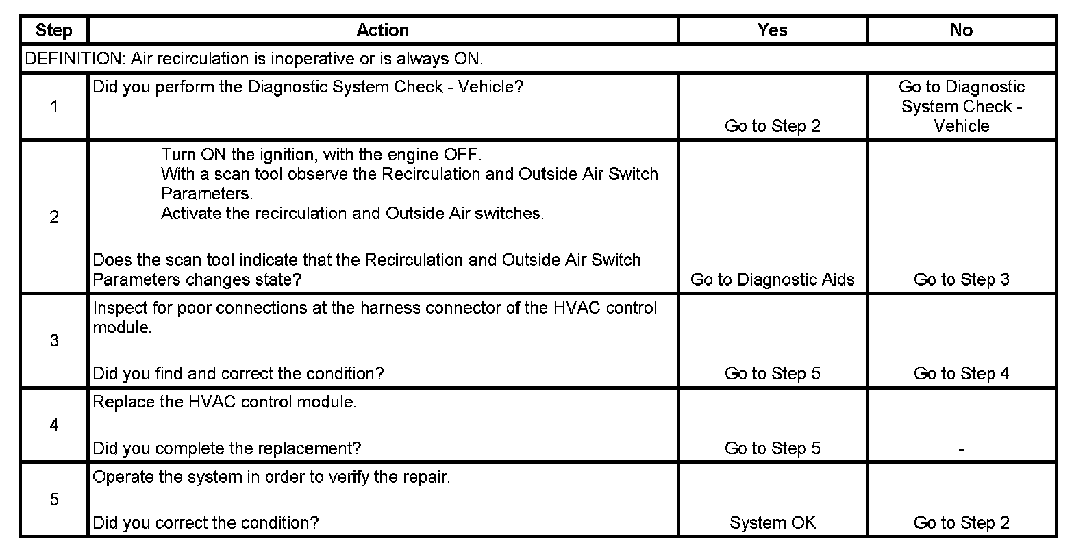 * If the scan tool indicates that the Door Actual parameter is 5-10 counts from the Commanded Door parameter, then perform the recalibration procedure for the HVAC door actuators. Refer to Re-Calibrating Actuators. Programming and Relearning