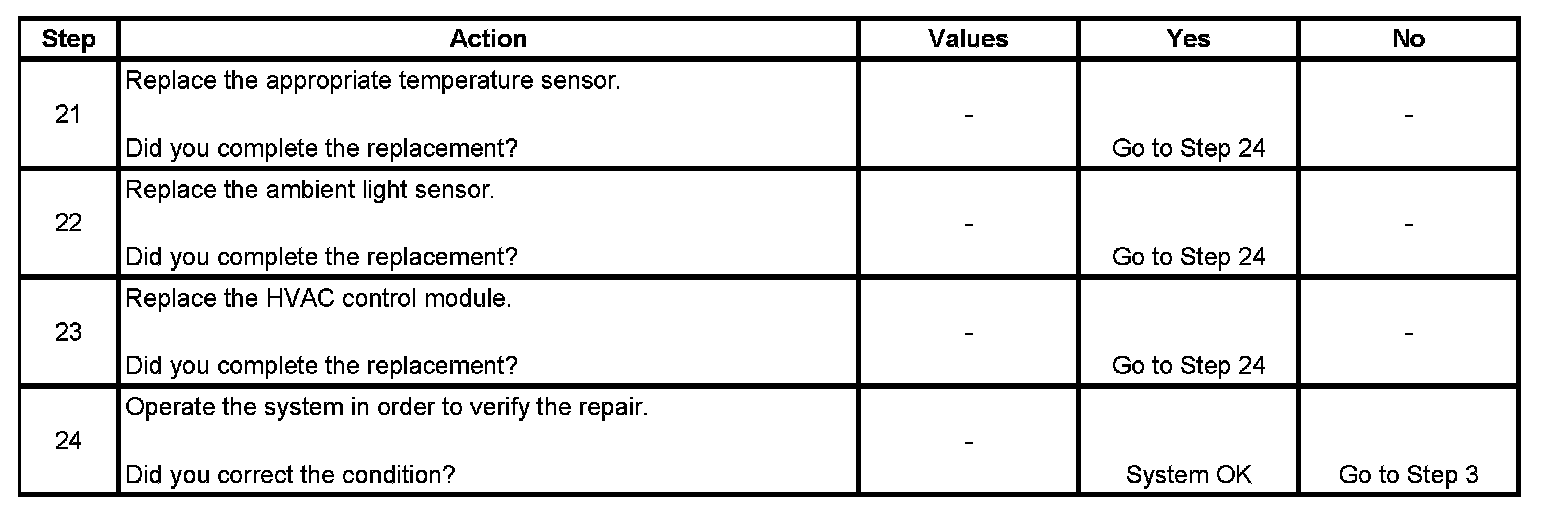 1. This test resets HVAC control module and checks for current air temperature actuator DTC.