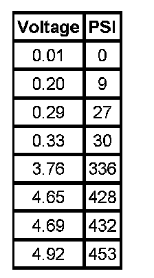 Refer to the following table for reference of air conditioning (A/C) refrigerant high side pressure sensor signal reading conversion from the DMM voltage value to psi value.