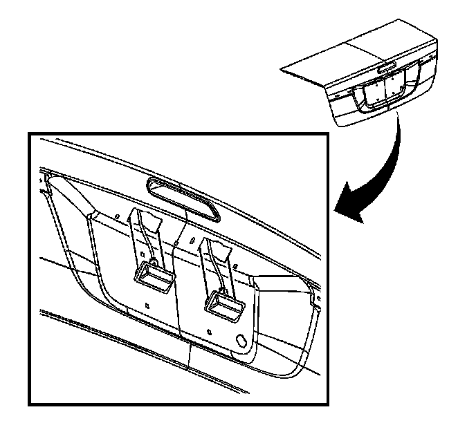 3. From the underside of the rear compartment lid, push in the side retaining tabs to the license lamp to unseat the lamp from the rear compartment lid.