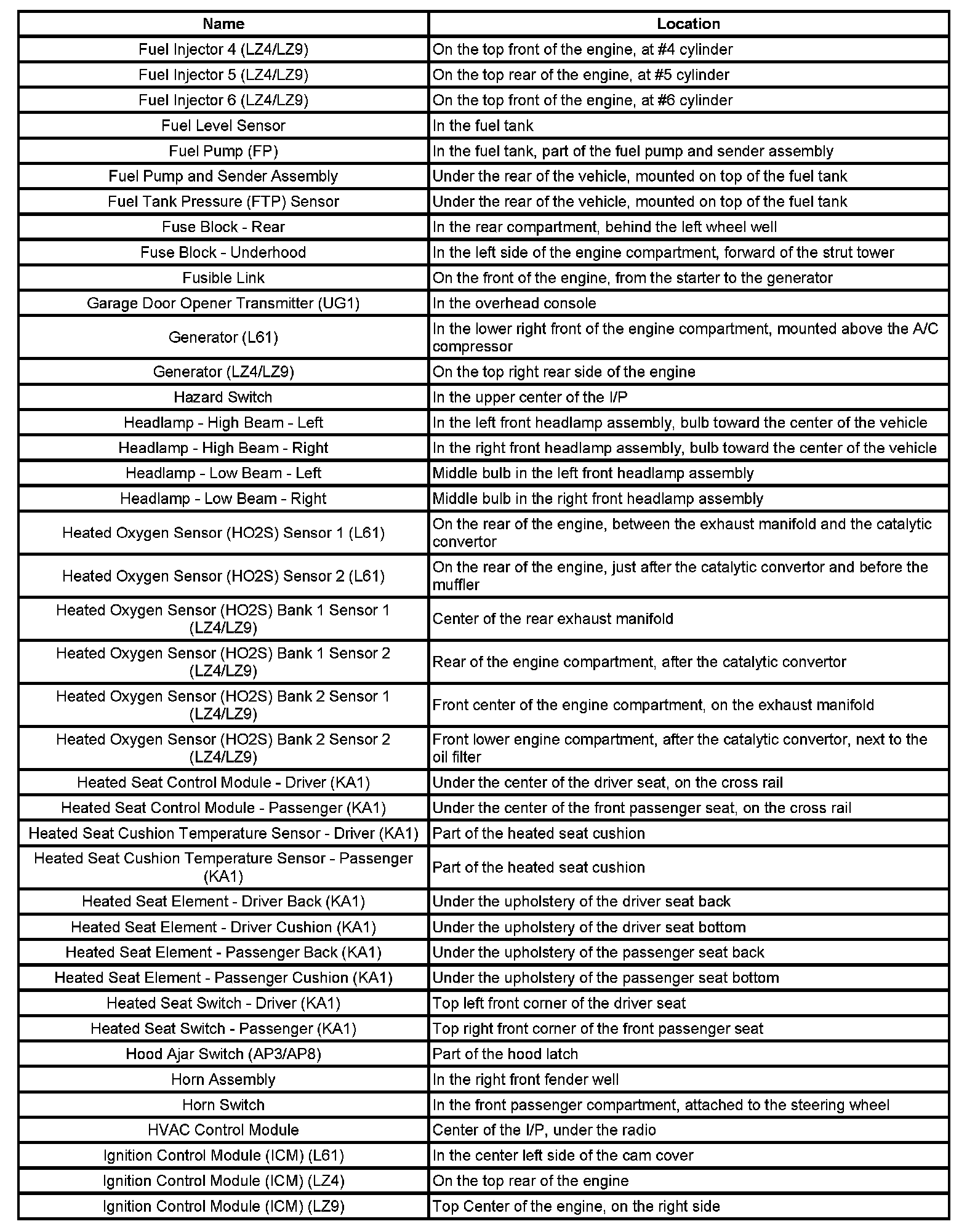 Component Locations
