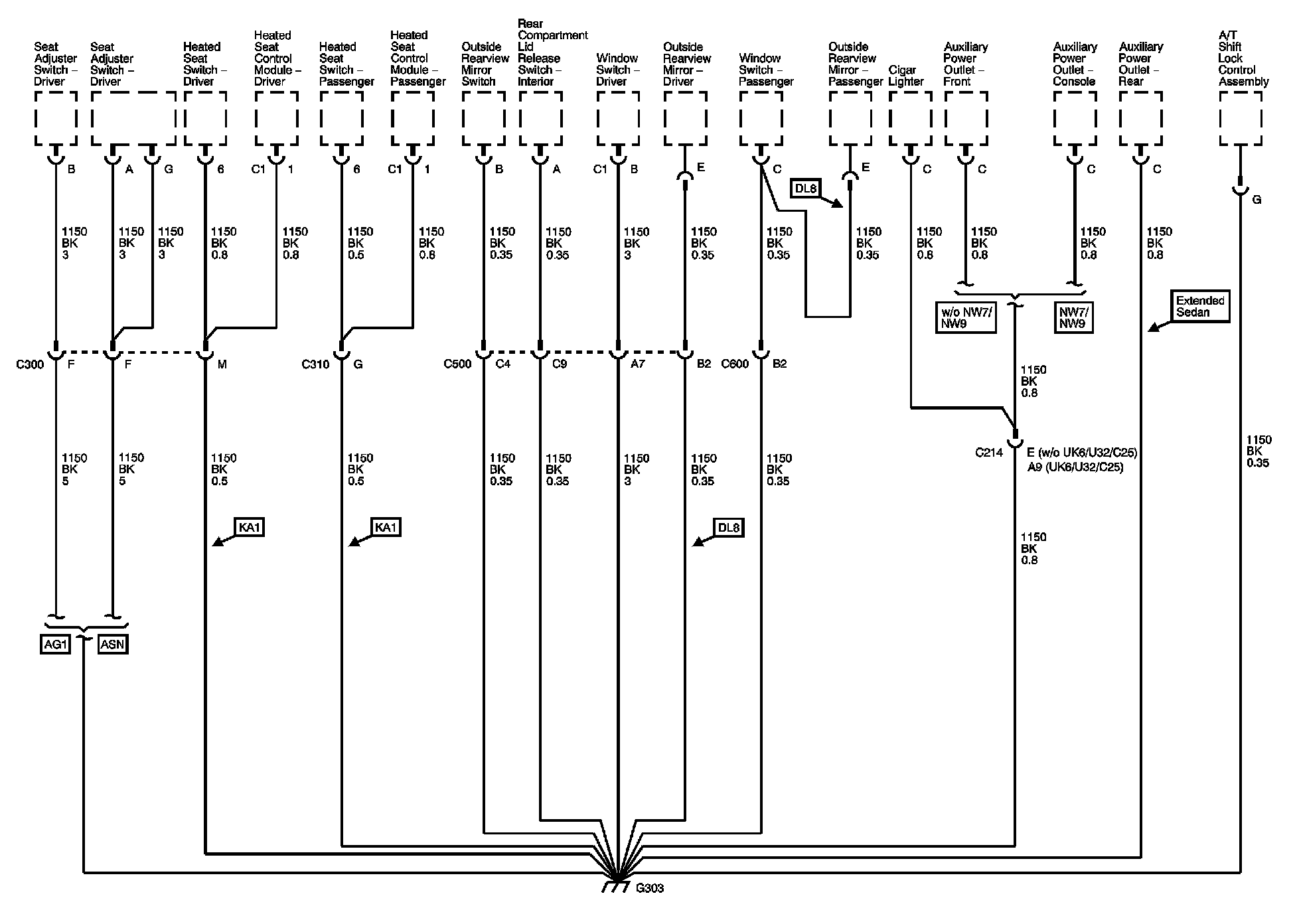 The locations for the Connectors, Grounds, Splices, and Grommets shown within these diagrams can be found via their numbers at Vehicle Locations.