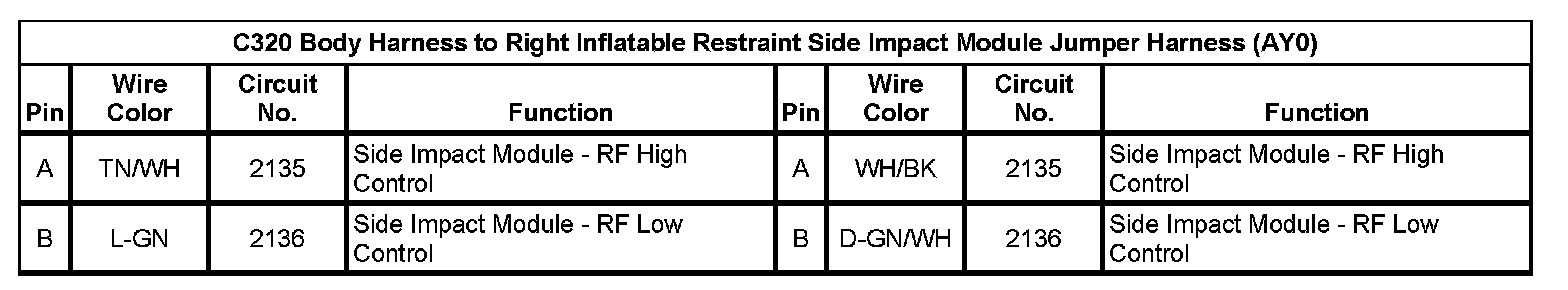 C320 Body Harness to Right Inflatable Restraint Side Impact Module Jumper Harness (AY0)