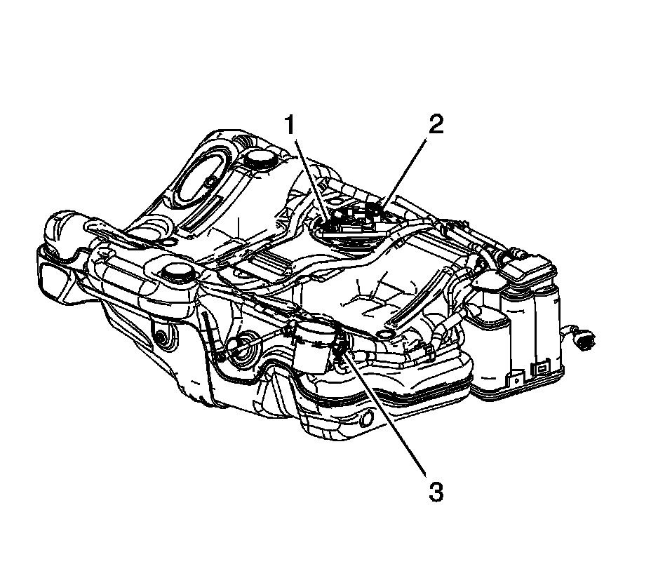 2. Disconnect the fuel tank fuel pump module wiring harness electrical connector (1) from the fuel tank pressure sensor.