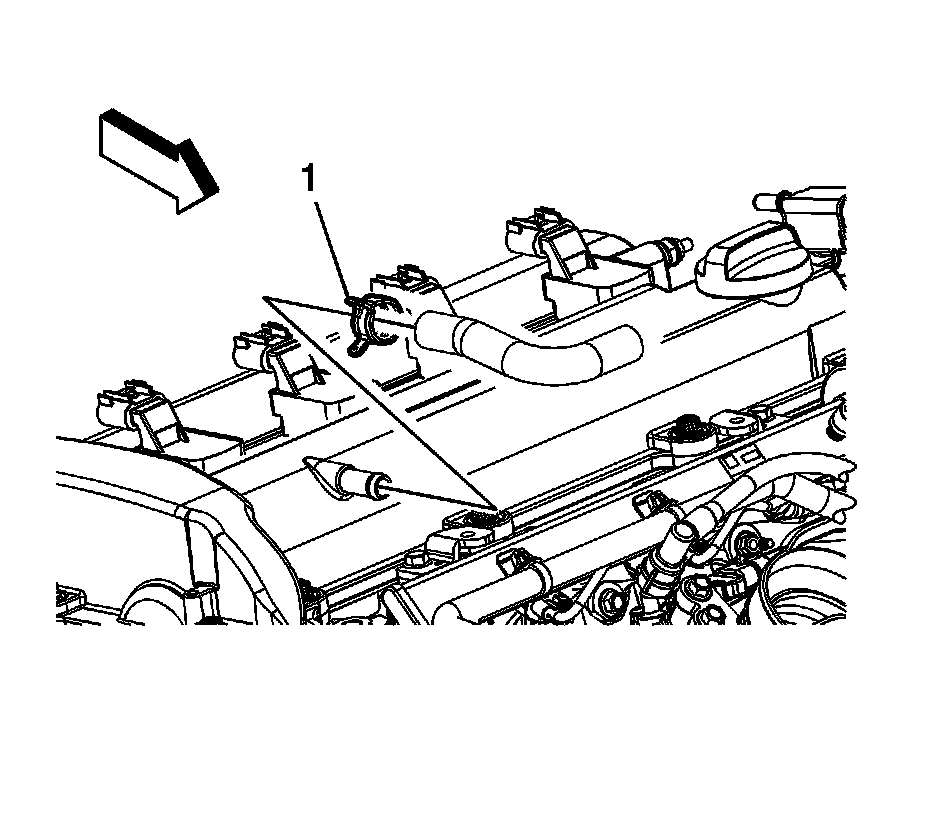 2. Position the PCV hose clamp (1) at the camshaft cover.