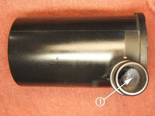 The fresh air inlet tube in the canister vent valve solenoid may be blocked or restricted with a spider nest (1), dirt or other debris.