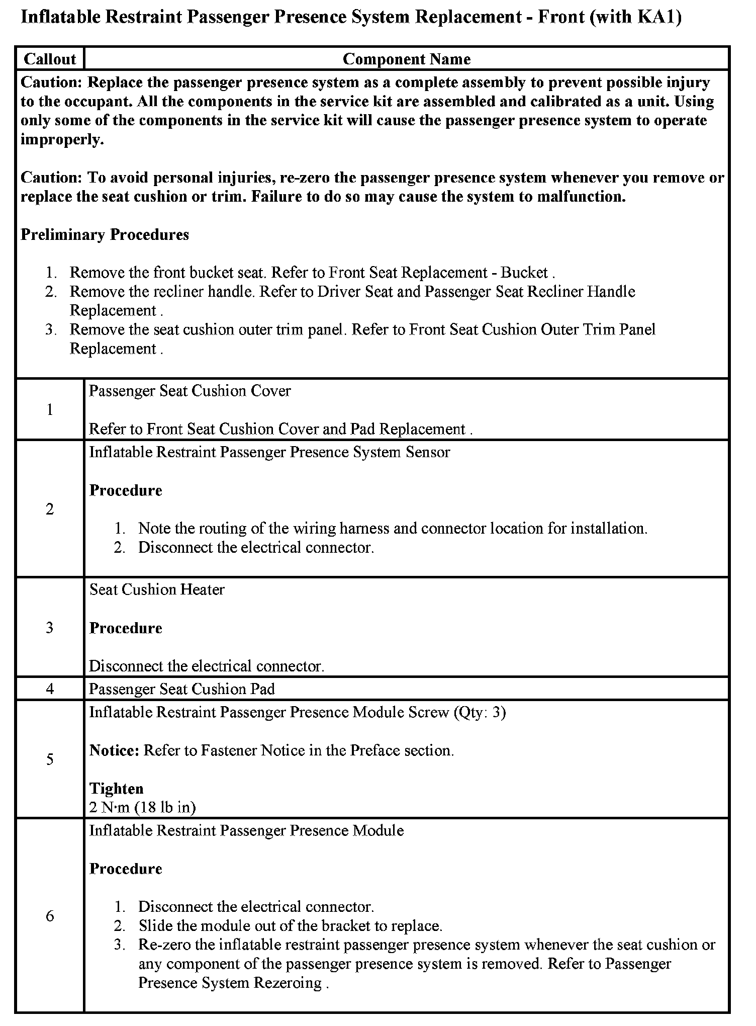 Inflatable Restraint Passenger Presence System Replacement - Front with RPO KA1