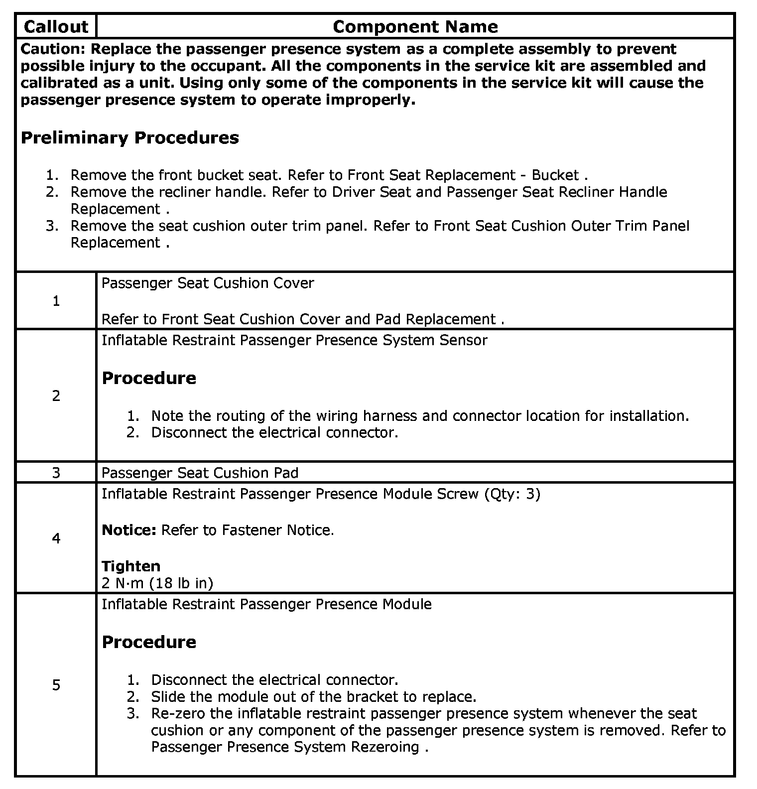 Inflatable Restraint Passenger Presence System Replacement - Front without RPO KA1