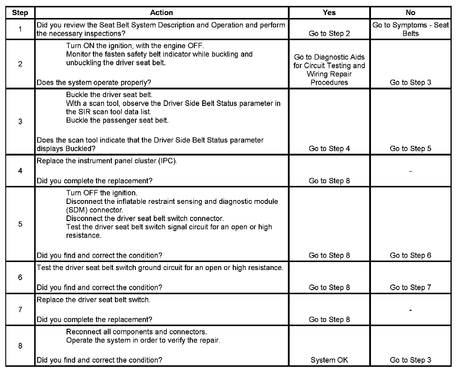 Seat Belt Indicator Circuit Malfunction
