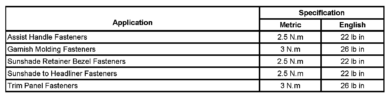 Fastener Tightening Specifications
