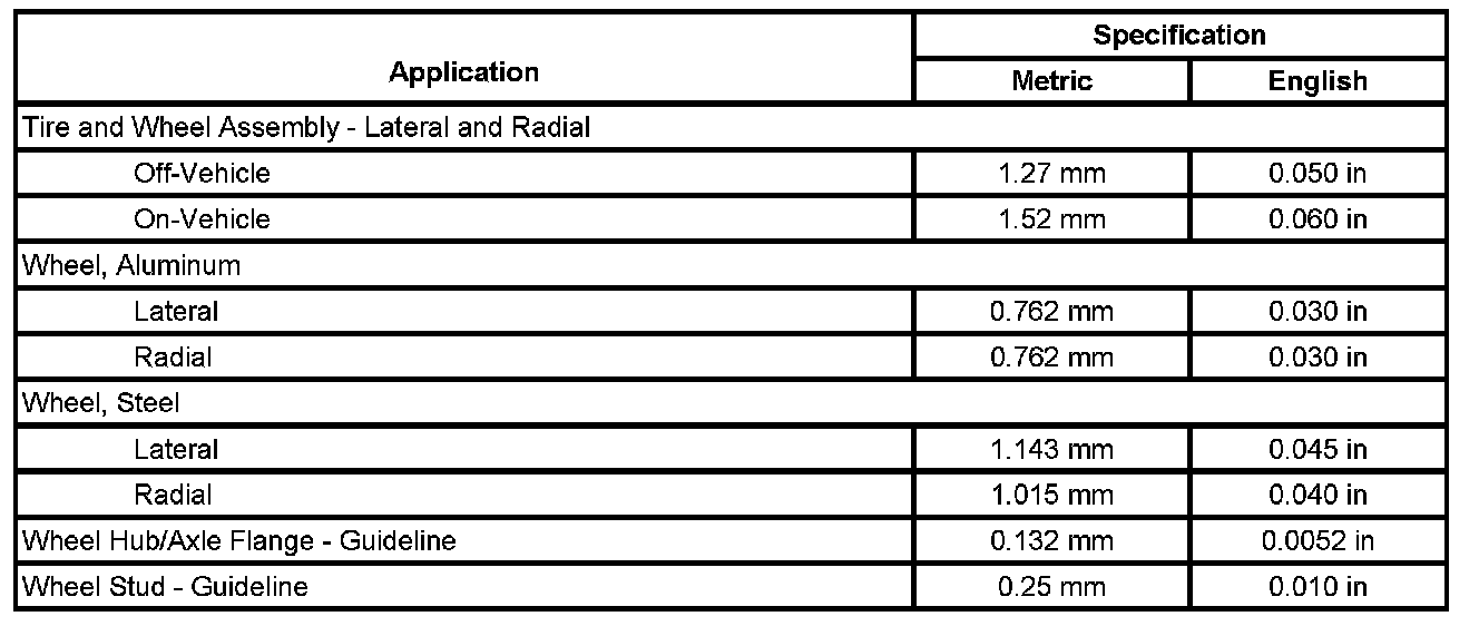 Tire and Wheel Runout Specifications