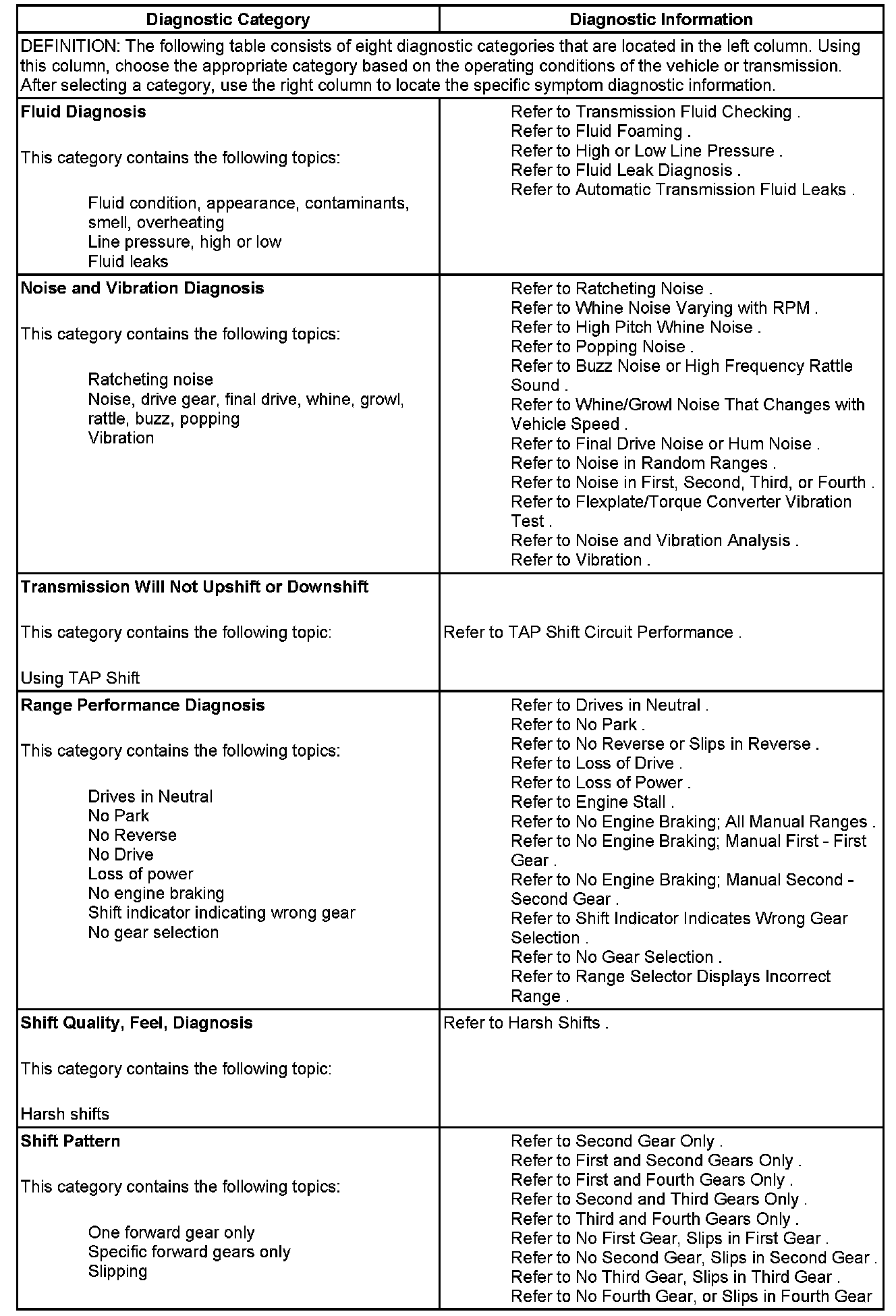 - Symptoms - Automatic Transmission