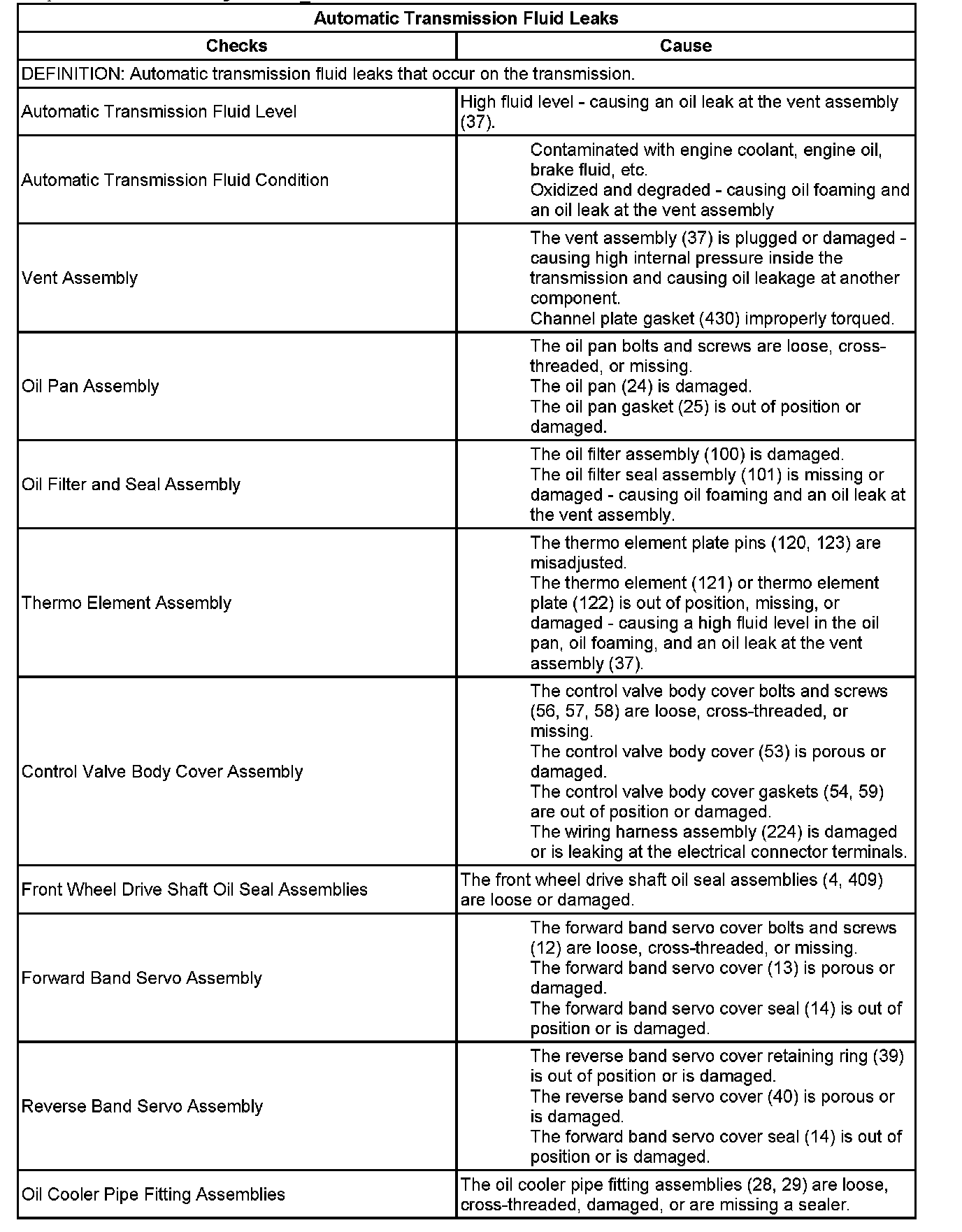 Automatic Transmission Fluid Leaks: