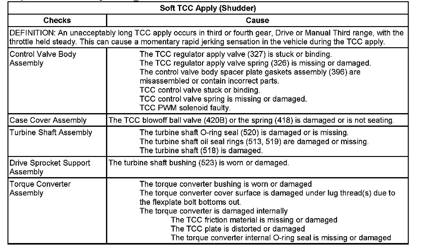 Converter Clutch Apply Rough, Slips, or Shudders: