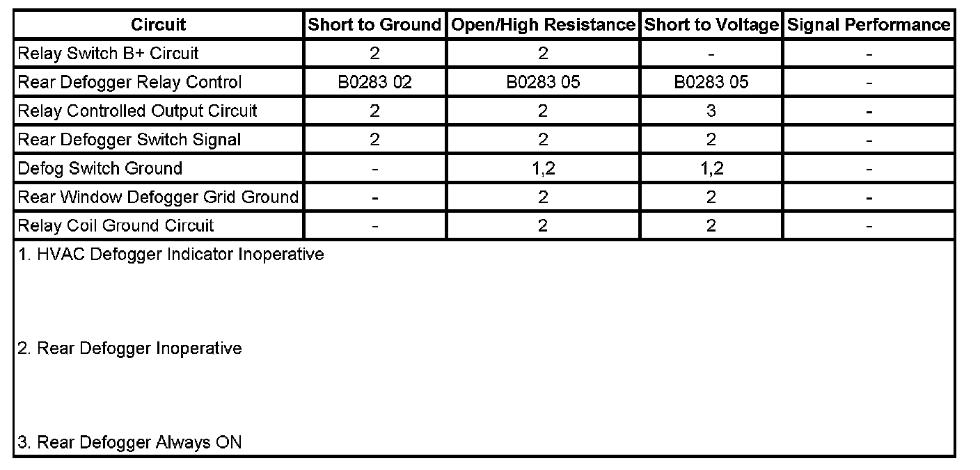 11. If all circuits test normal, test or replace the R/WDO DEFOG relay.