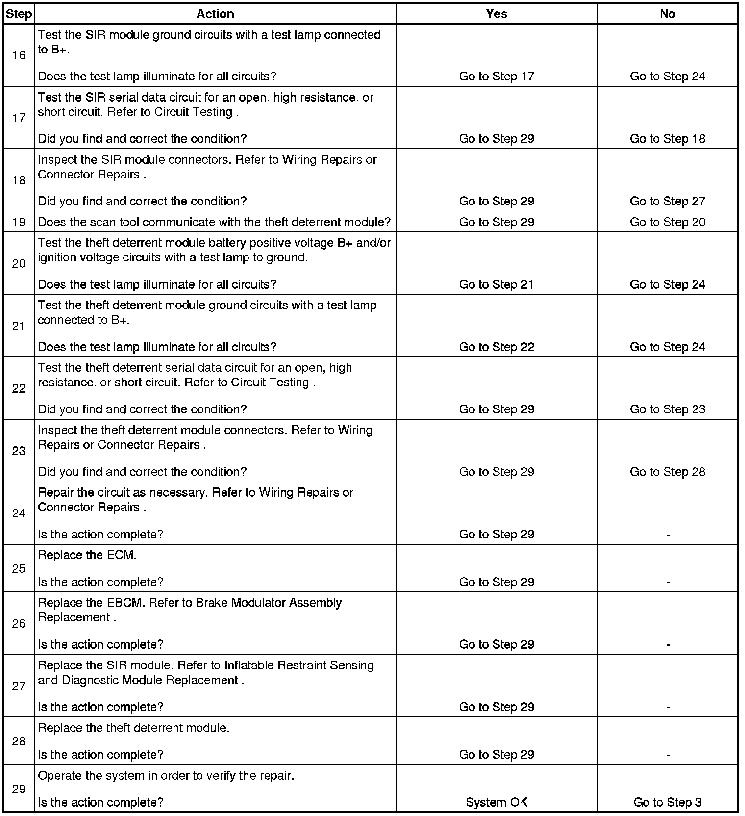 19. This step checks to see if the theft deterrent-immobilizer system is not communicating with the scan tool.