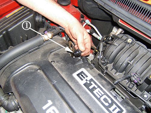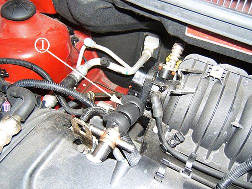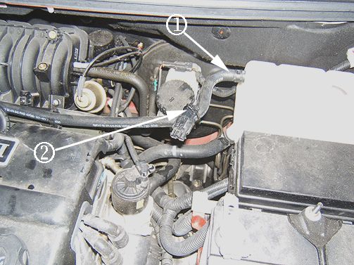 1. Disconnect the PCV valve heater hose from the PCV Valve (2).