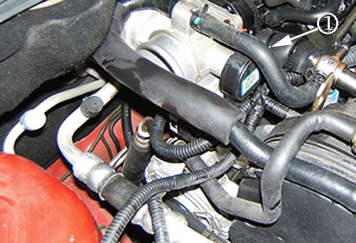 4. Disconnect the coolant return hose from the throttle body assembly (1).