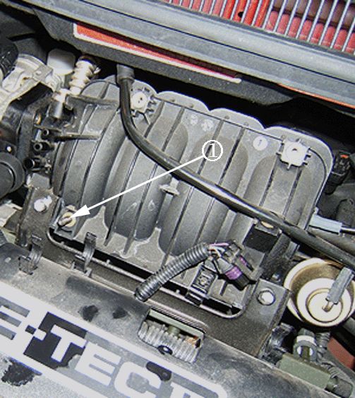 2. Remove the MAP sensor bolt/screw from the intake manifold (2) and discard the fastener.