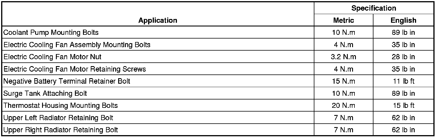 Fastener Tightening Specifications
