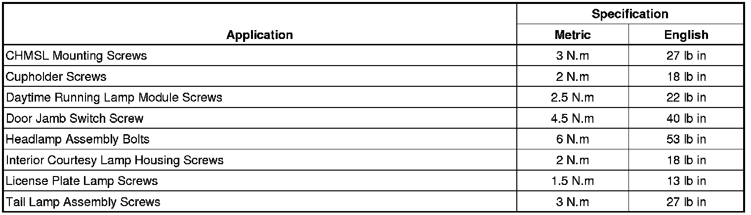 Fastener Tightening Specifications