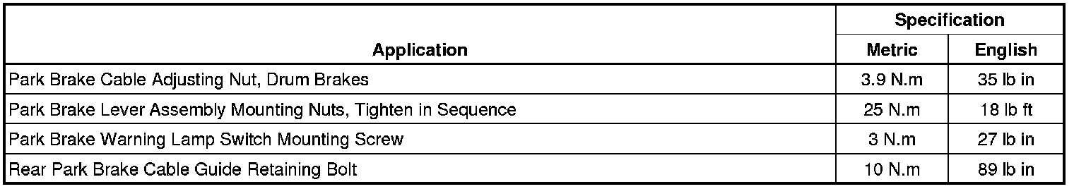 Parking Brake System: Specifications