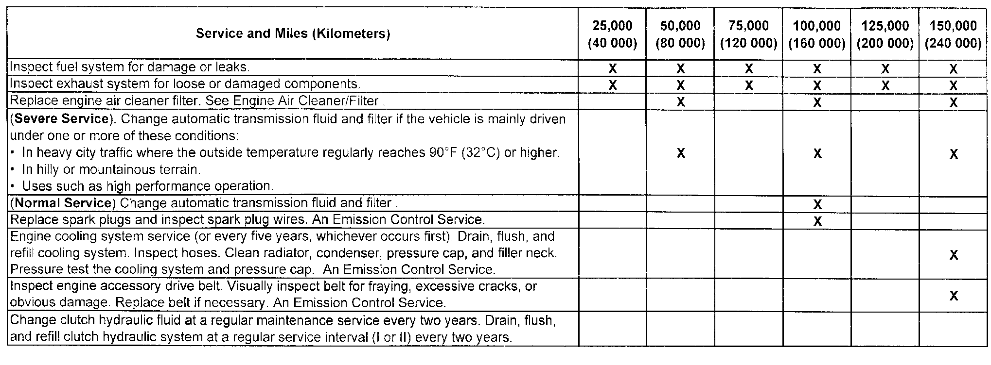 service (I or II) after the indicated miles (kilometers) shown for each item.