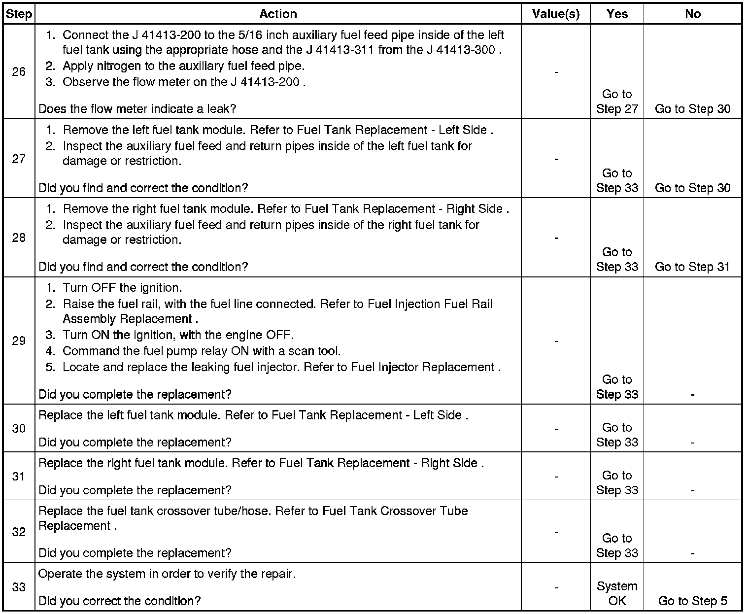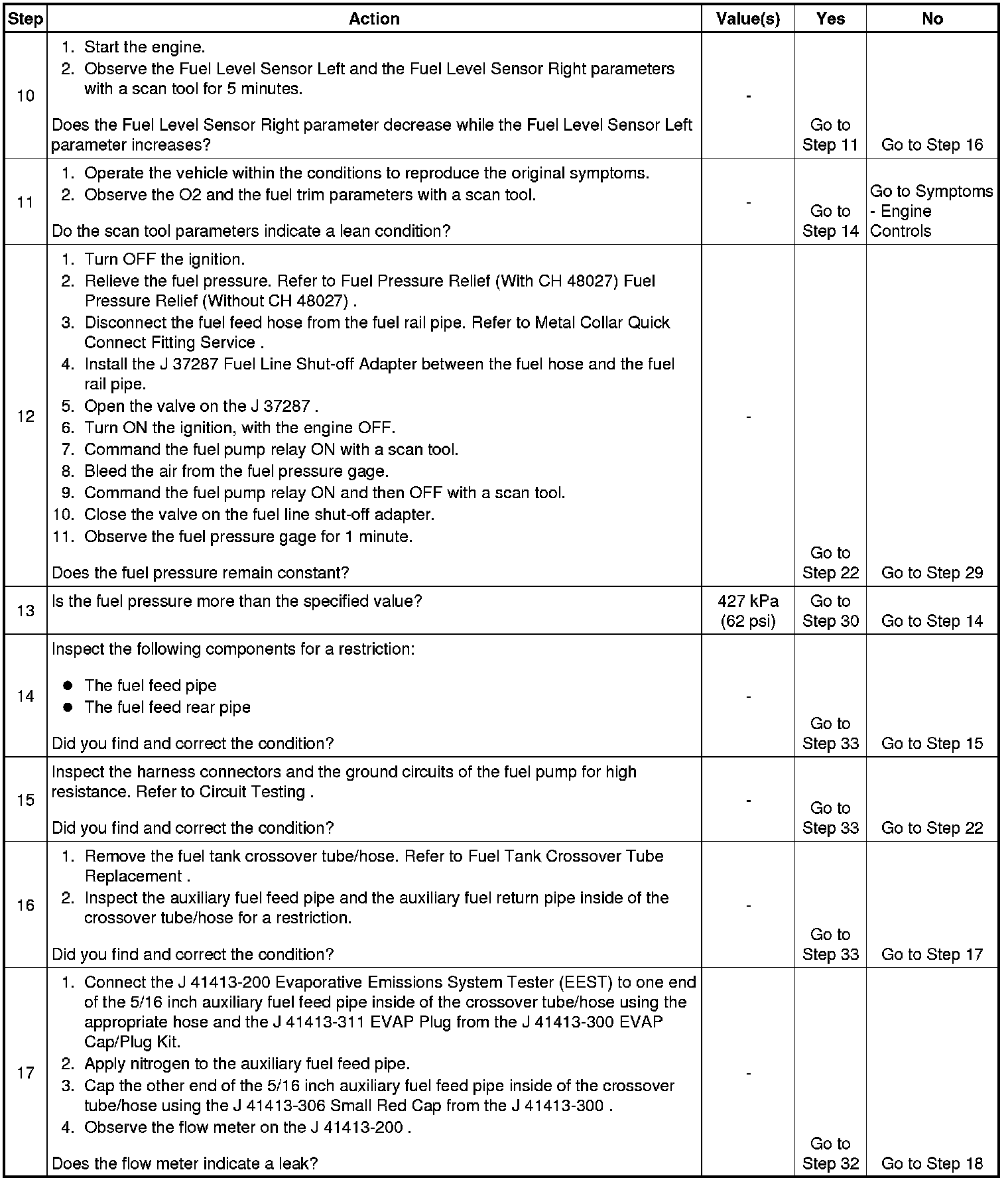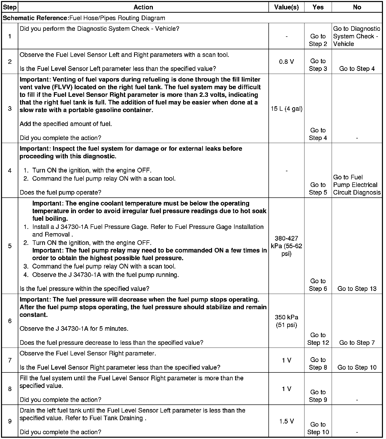 Two fuel tanks store the fuel supply. An electric turbine style fuel pump attaches to the fuel tank module inside the left fuel tank. The fuel pump supplies high pressure fuel through the fuel filter and the fuel feed pipe to the fuel injection system. The fuel pump provides fuel at a higher rate of flow than is needed by the fuel injection system. The fuel pump also supplies fuel to a Venturi pump located on the bottom of the left fuel tank module. The function of the Venturi pump is to fill the left fuel tank module reservoir. The primary fuel pressure regulator, a part of the left fuel tank module, maintains the correct fuel pressure to the fuel injection system. The left fuel tank module contains a reverse flow check valve. The check valve, the primary fuel pressure regulator, and the secondary fuel pressure regulator maintain fuel pressure in the fuel feed pipe and the fuel rail in order to prevent long cranking times.