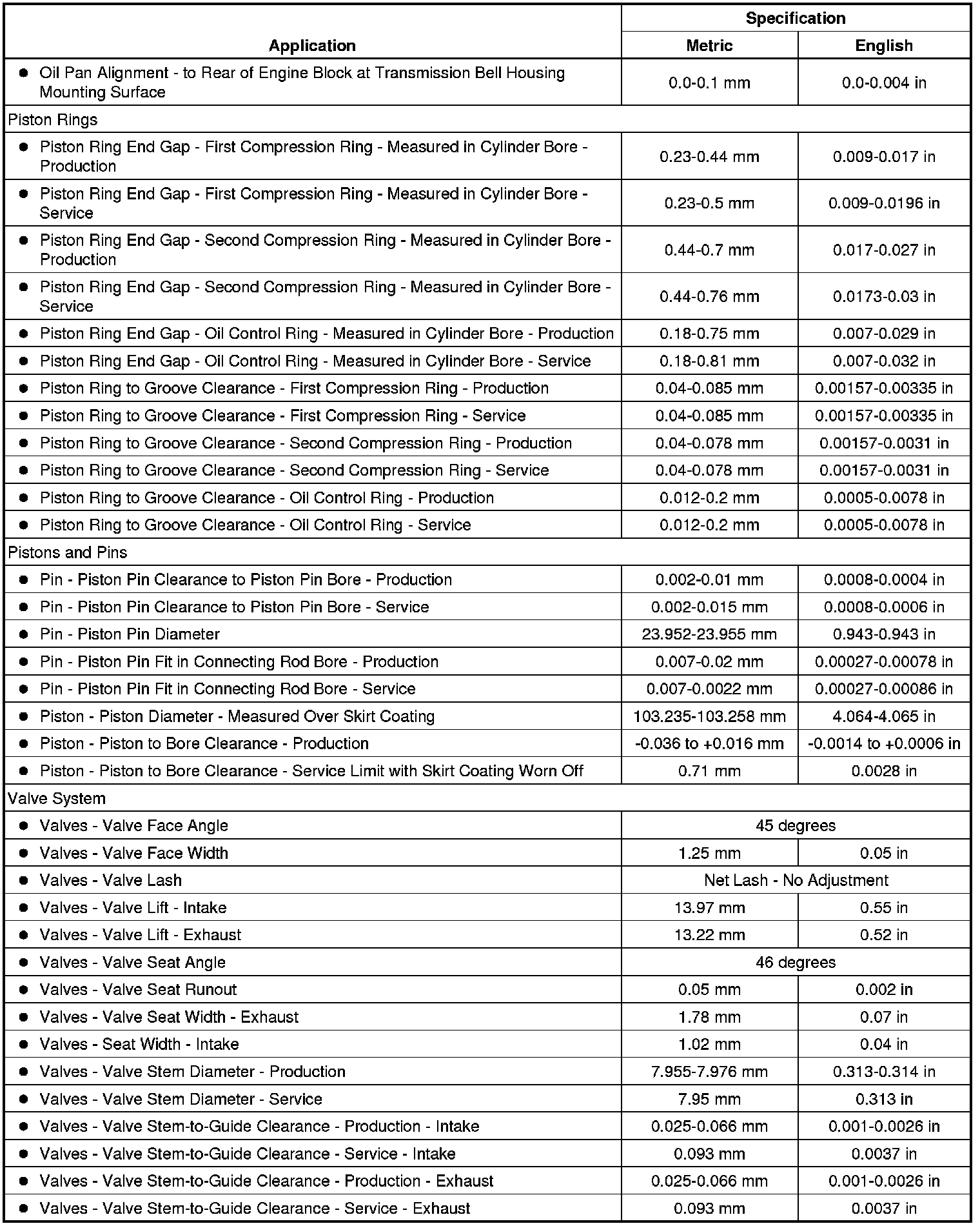 Engine Mechanical Specifications (6.2L)