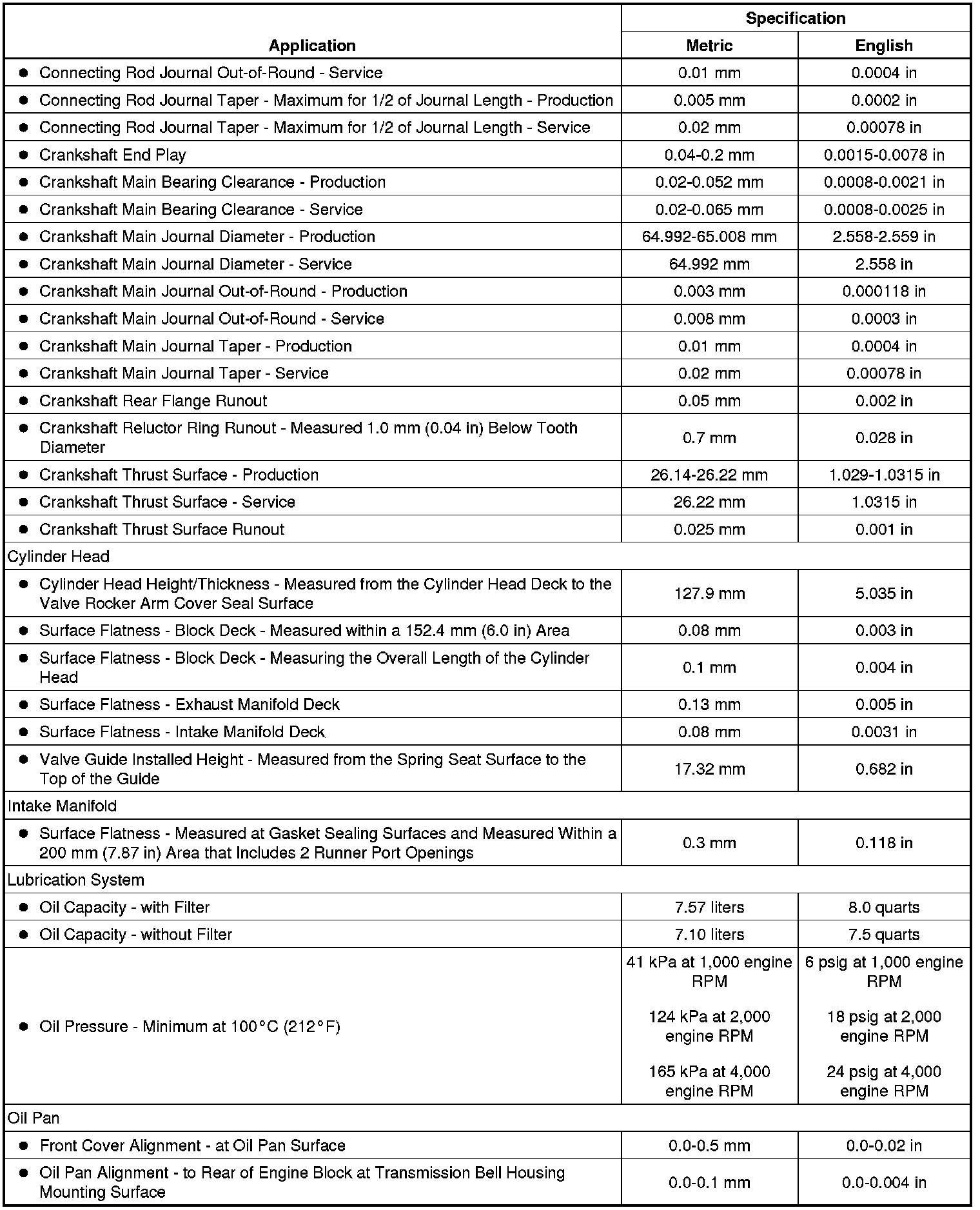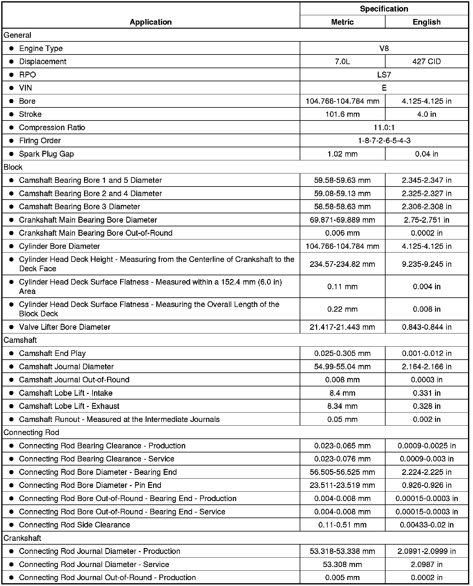 Engine Mechanical Specifications (7.0L)