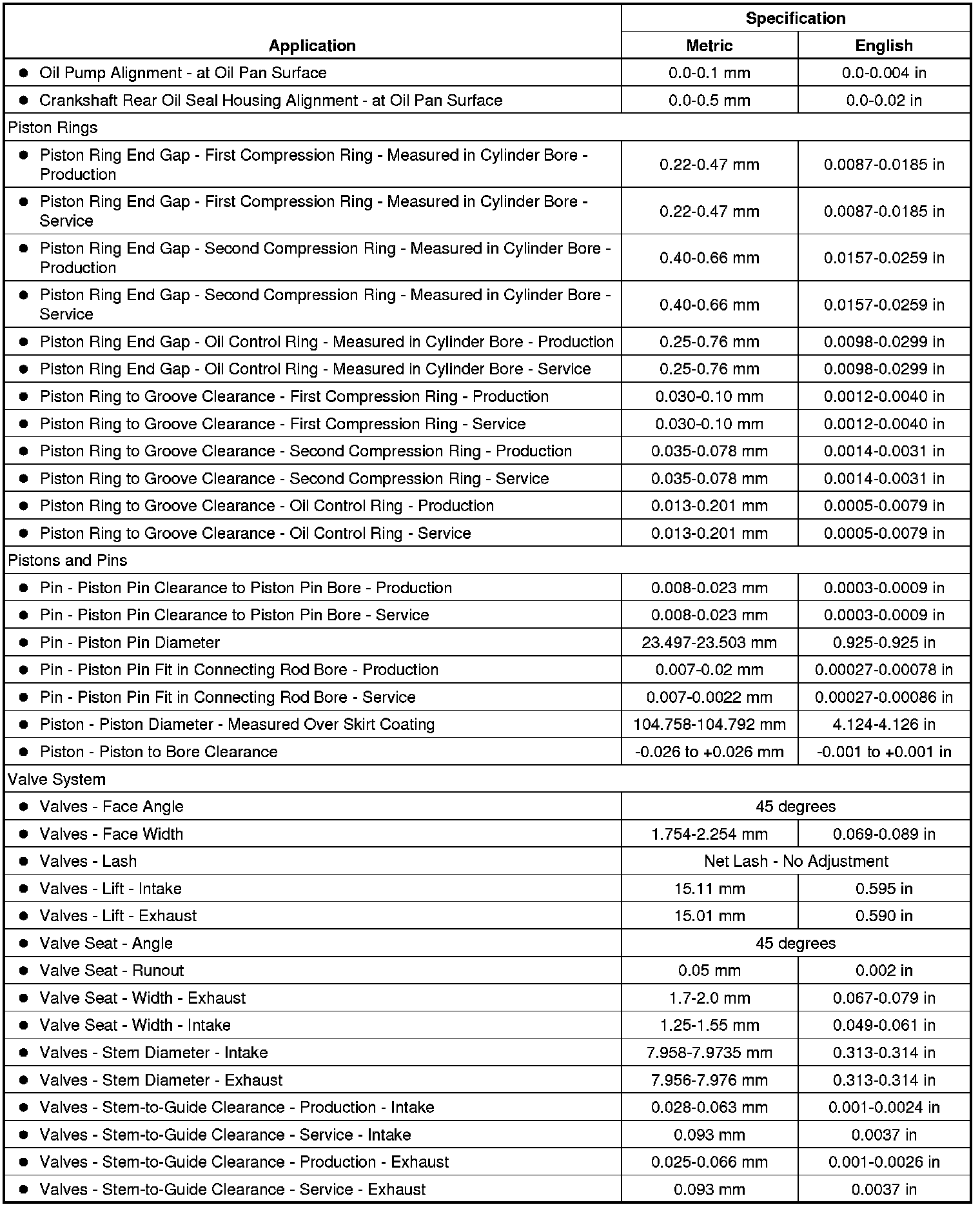 Engine General Specifications & Service Limits
