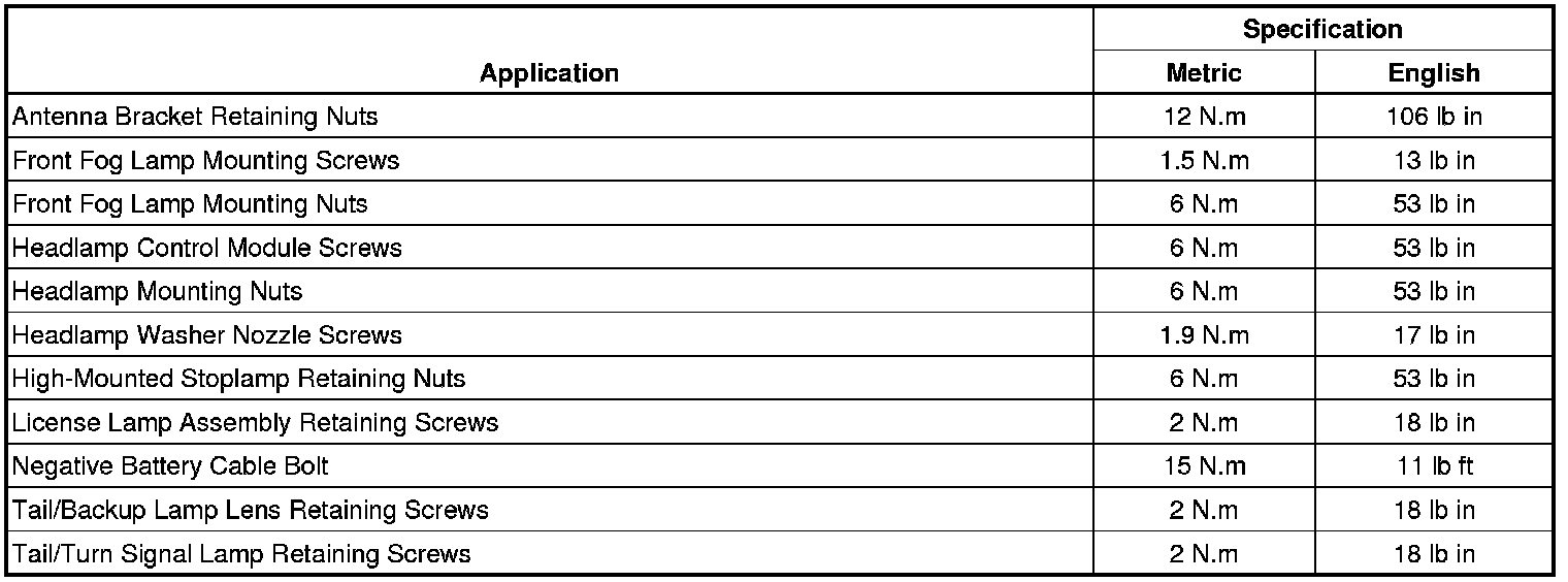 Fastener Tightening Specifications