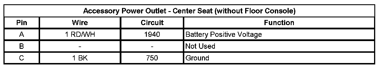Accessory Power Outlet - Center Seat (without Floor Console)