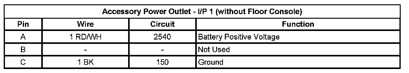 Accessory Power Outlet - I/P 1 (without Floor Console)