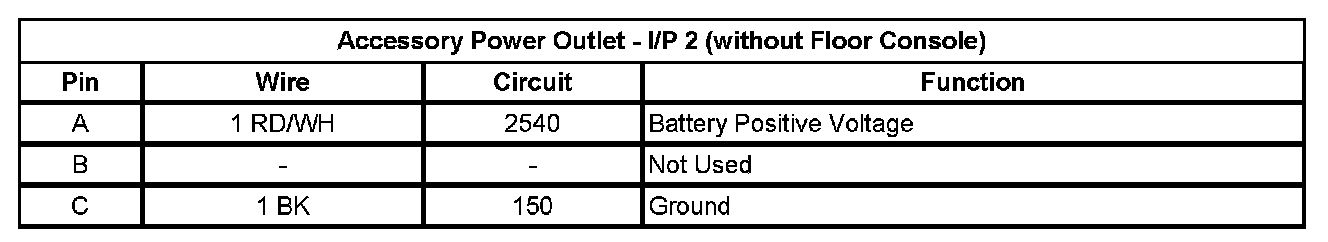 Accessory Power Outlet - I/P 2 (without Floor Console)