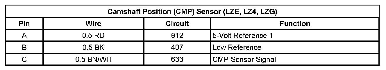 Camshaft Position (CMP) Sensor (LZE, LZ4, LZG)