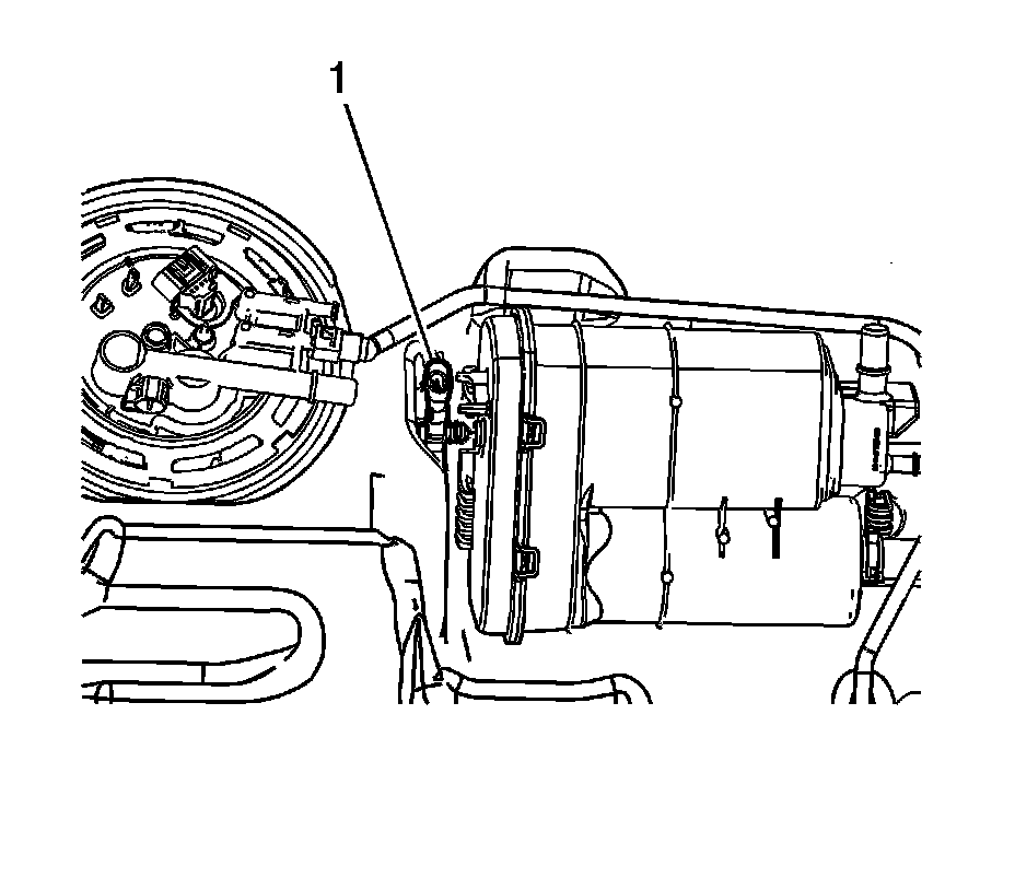 3. Using a small flat bladed tool, gently pry the fuel pressure sensor (1) out of the EVAP canister in order to remove the sensor.