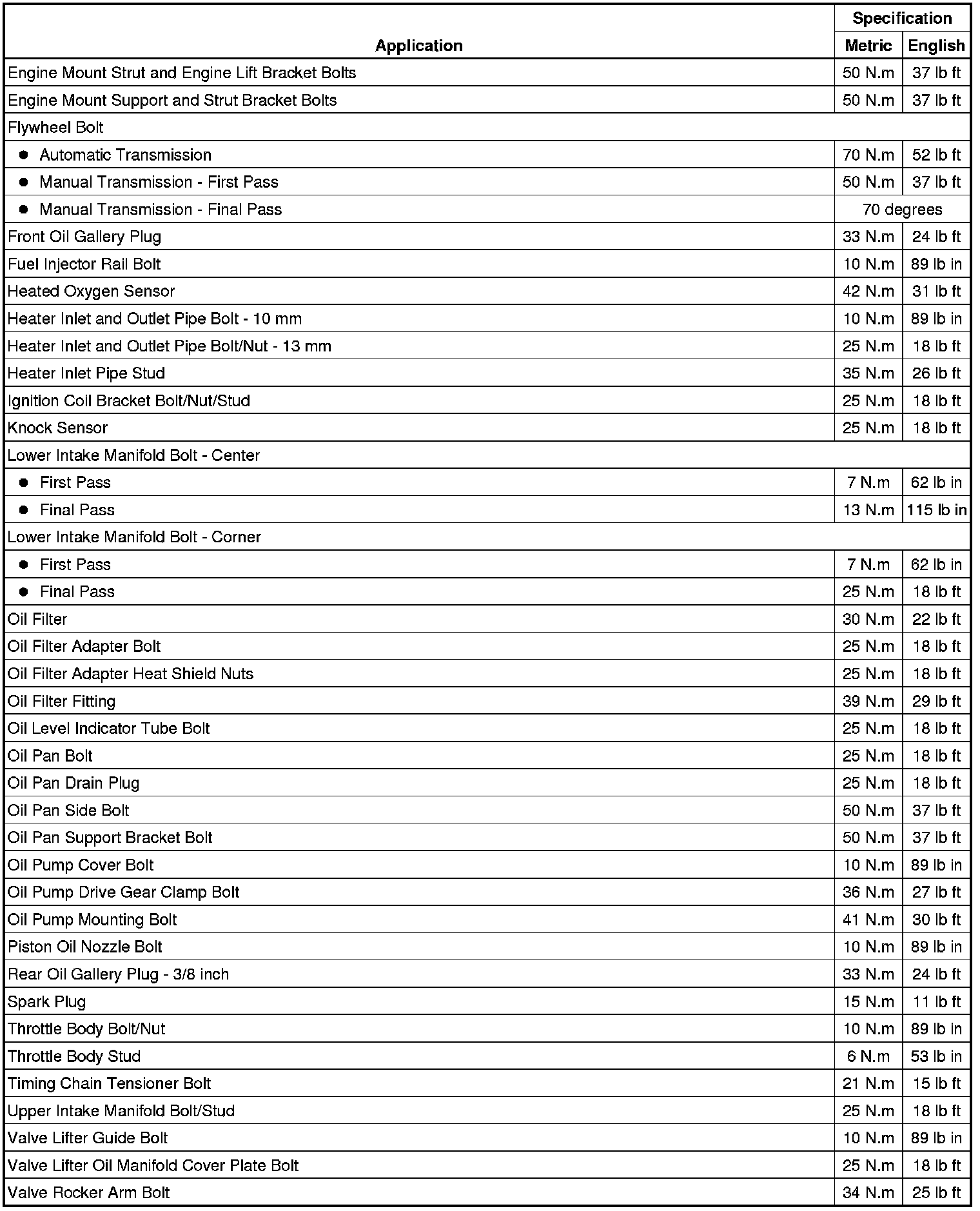 Fastener Tightening Specifications