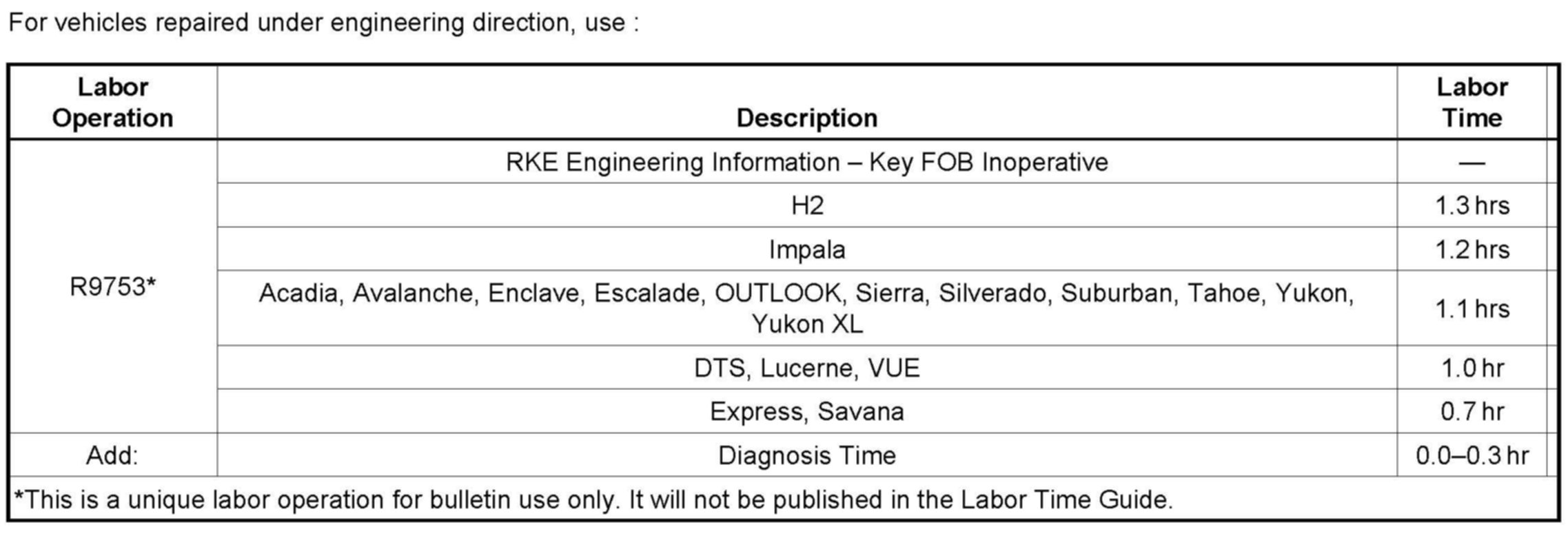 GM Engineering is attempting to determine the root cause for the concern with the Remote Keyless Entry system. GM Engineering has a need to obtain information first hand during the diagnosis and repair. As a result, this information will be used by Engineering to "root cause" the customer's concern and develop/validate a field fix.