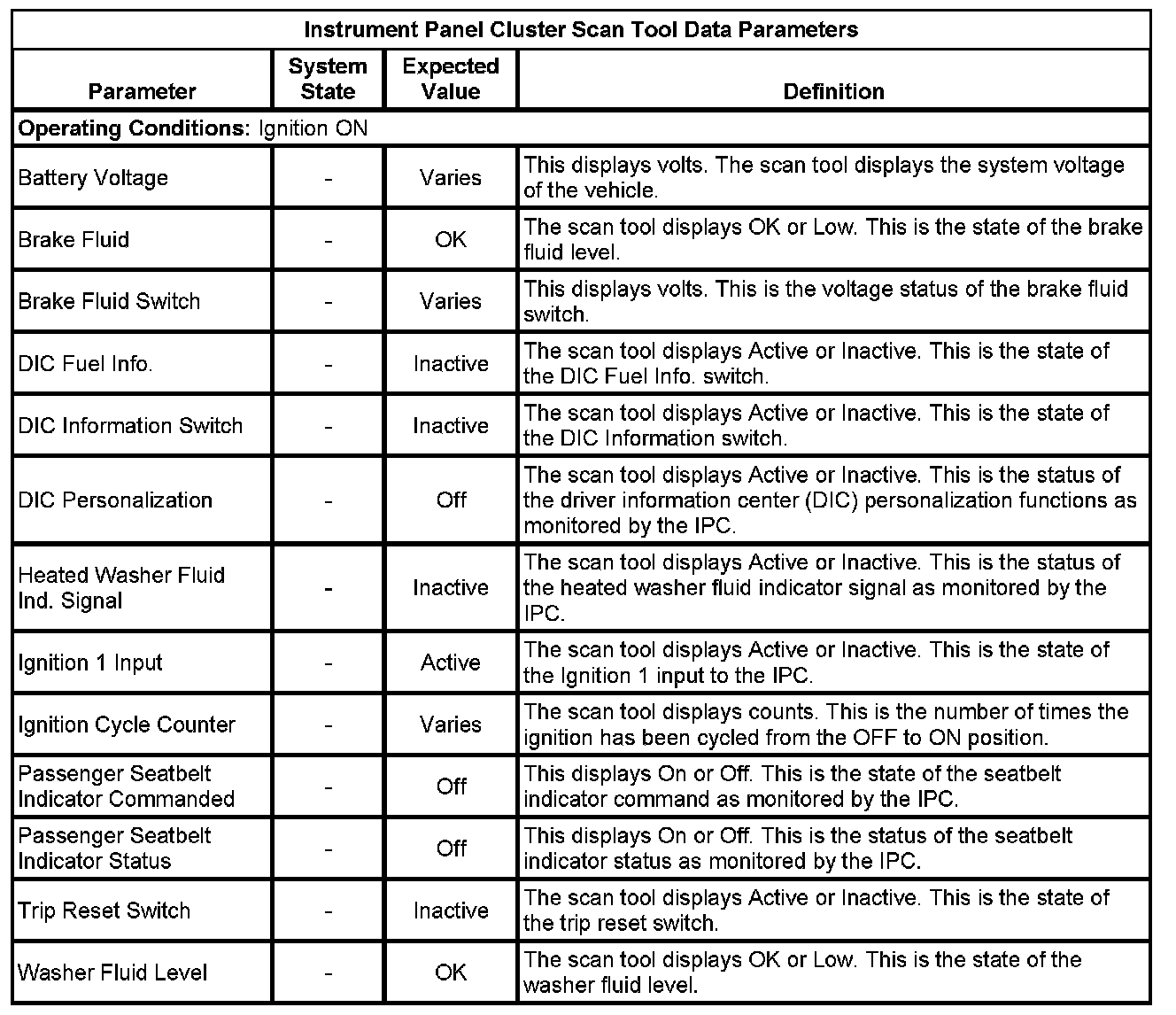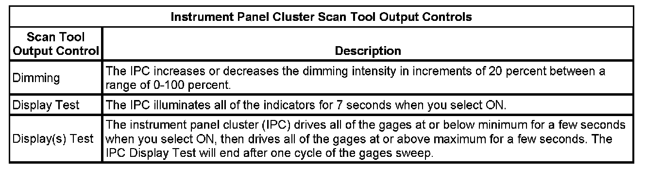 Instrument Cluster Scan Tool Information