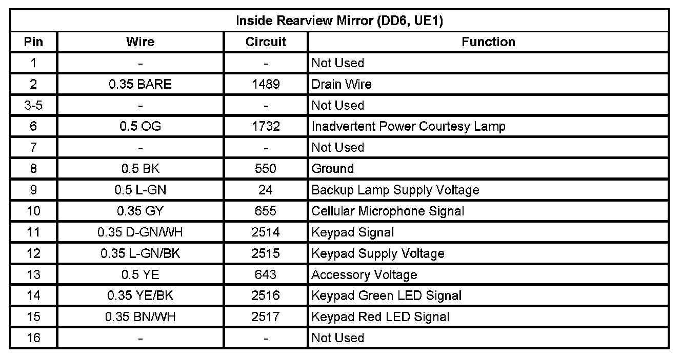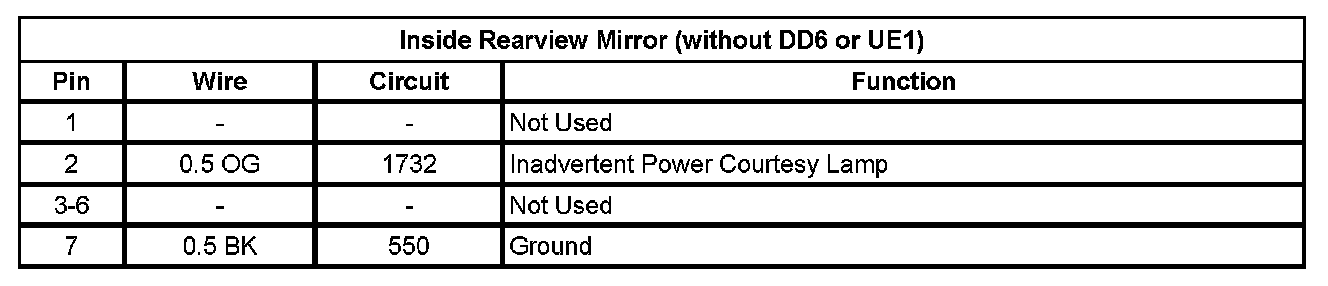 Inside Rearview Mirror (DD6, UE1)