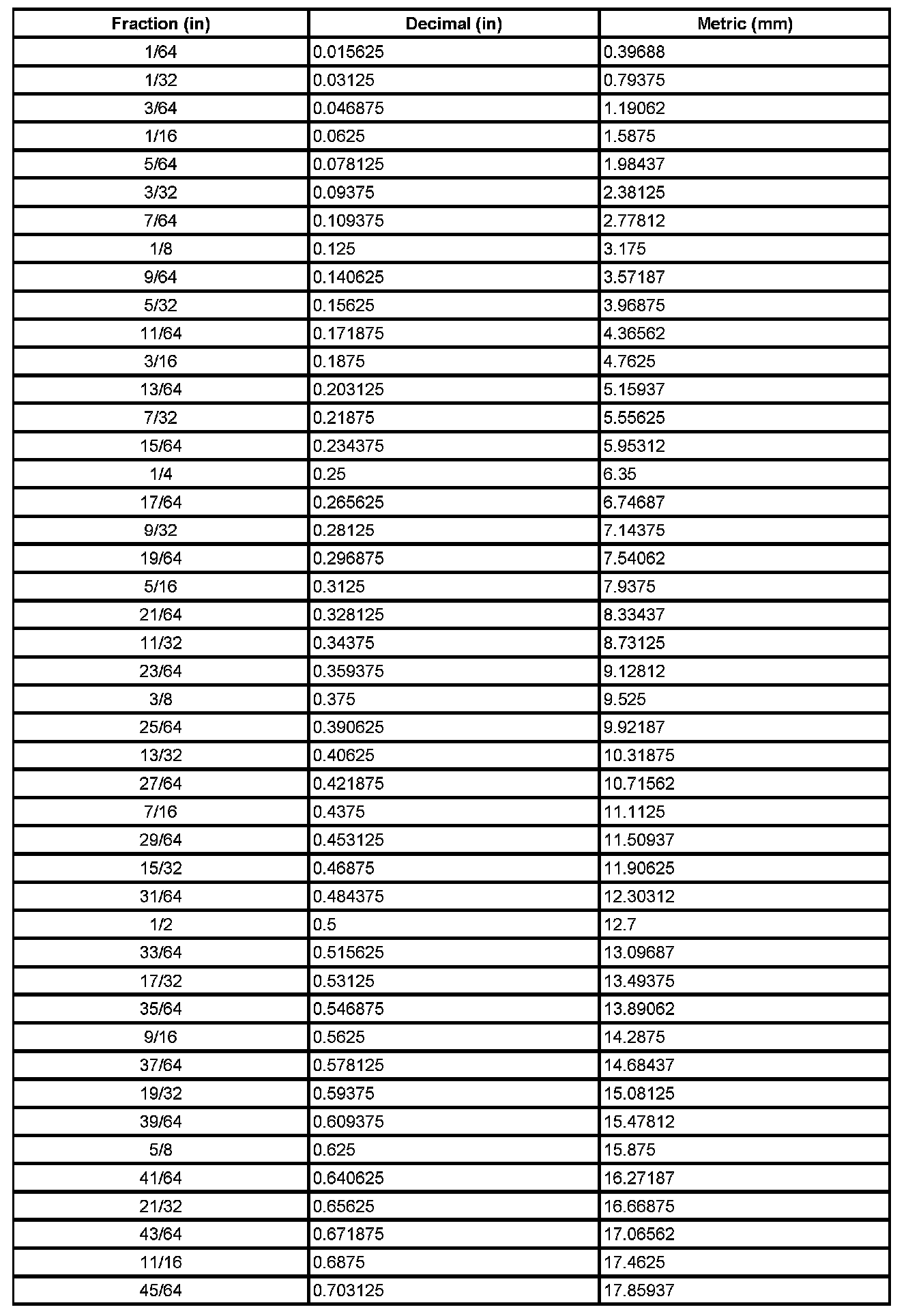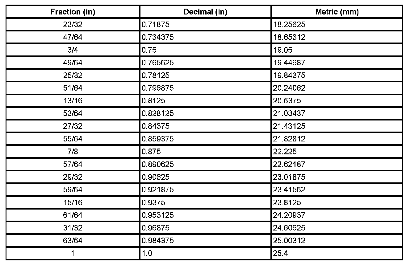 Decimal and Metric Equivalents