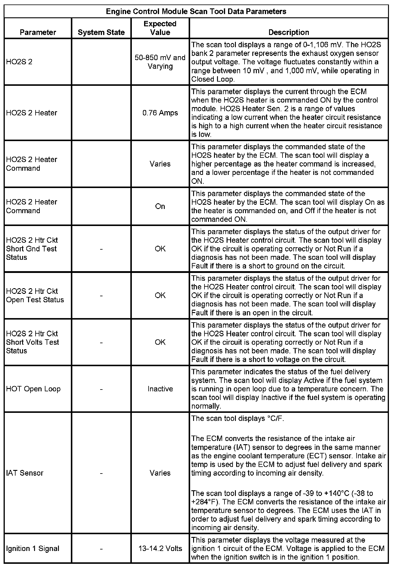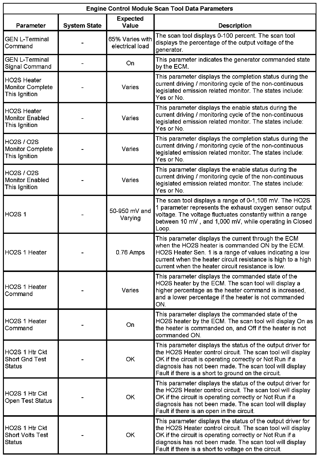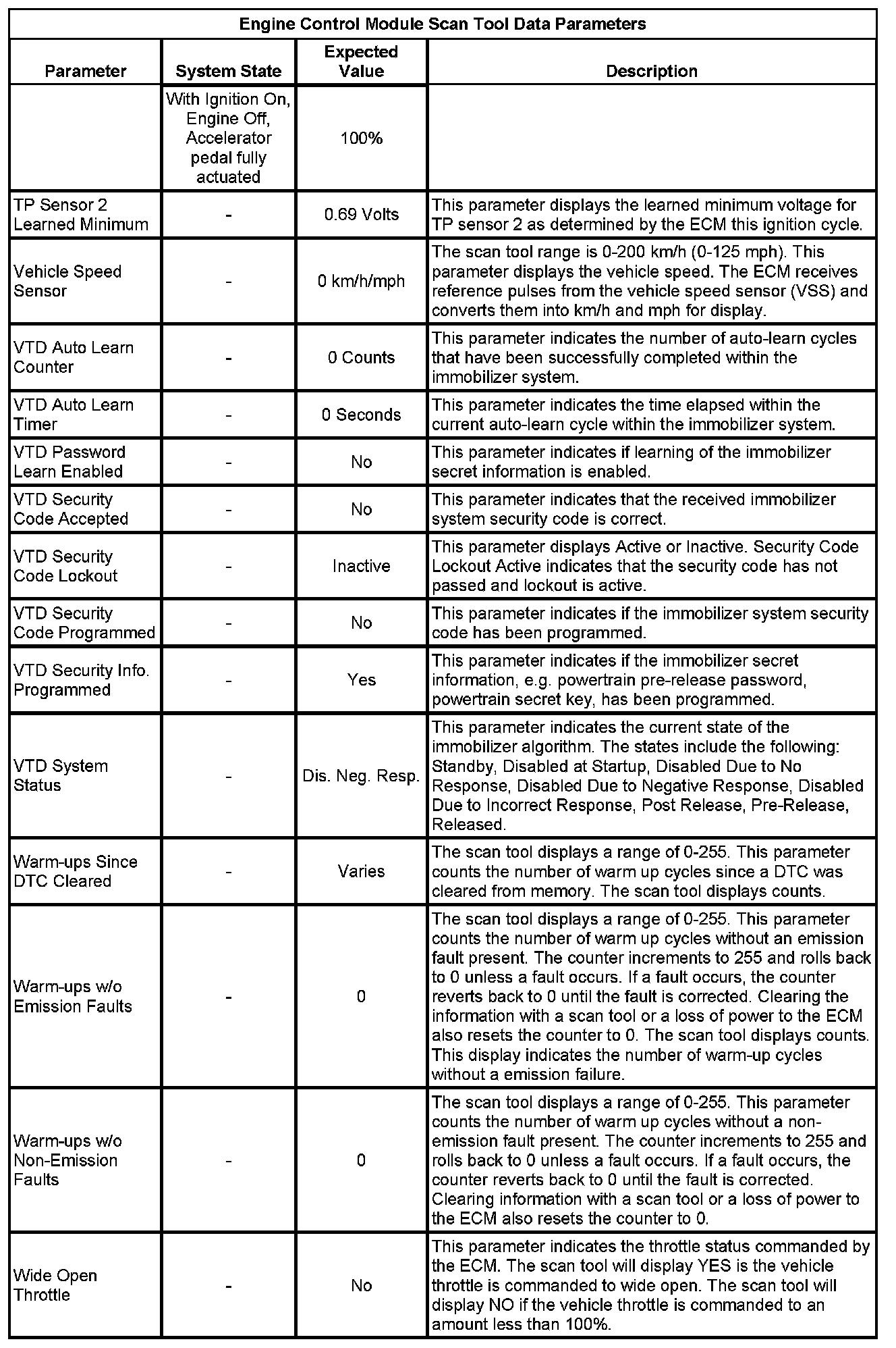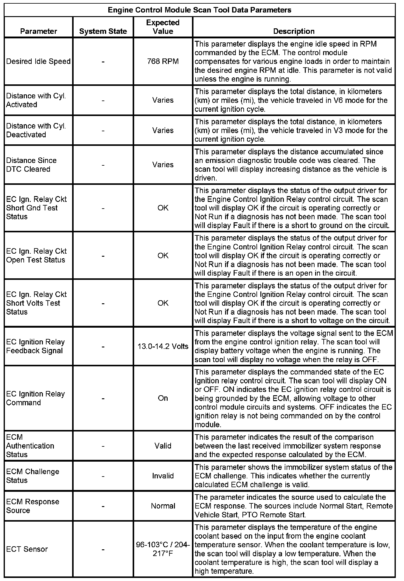 The Engine Control Module Scan Tool Data List contains all engine-related parameters that are available on the scan tool. The list is arranged in alphabetical order. A given parameter may appear in any one of the data lists, and in some cases may appear more than once, or in more than one data list in order to group certain related parameters together.