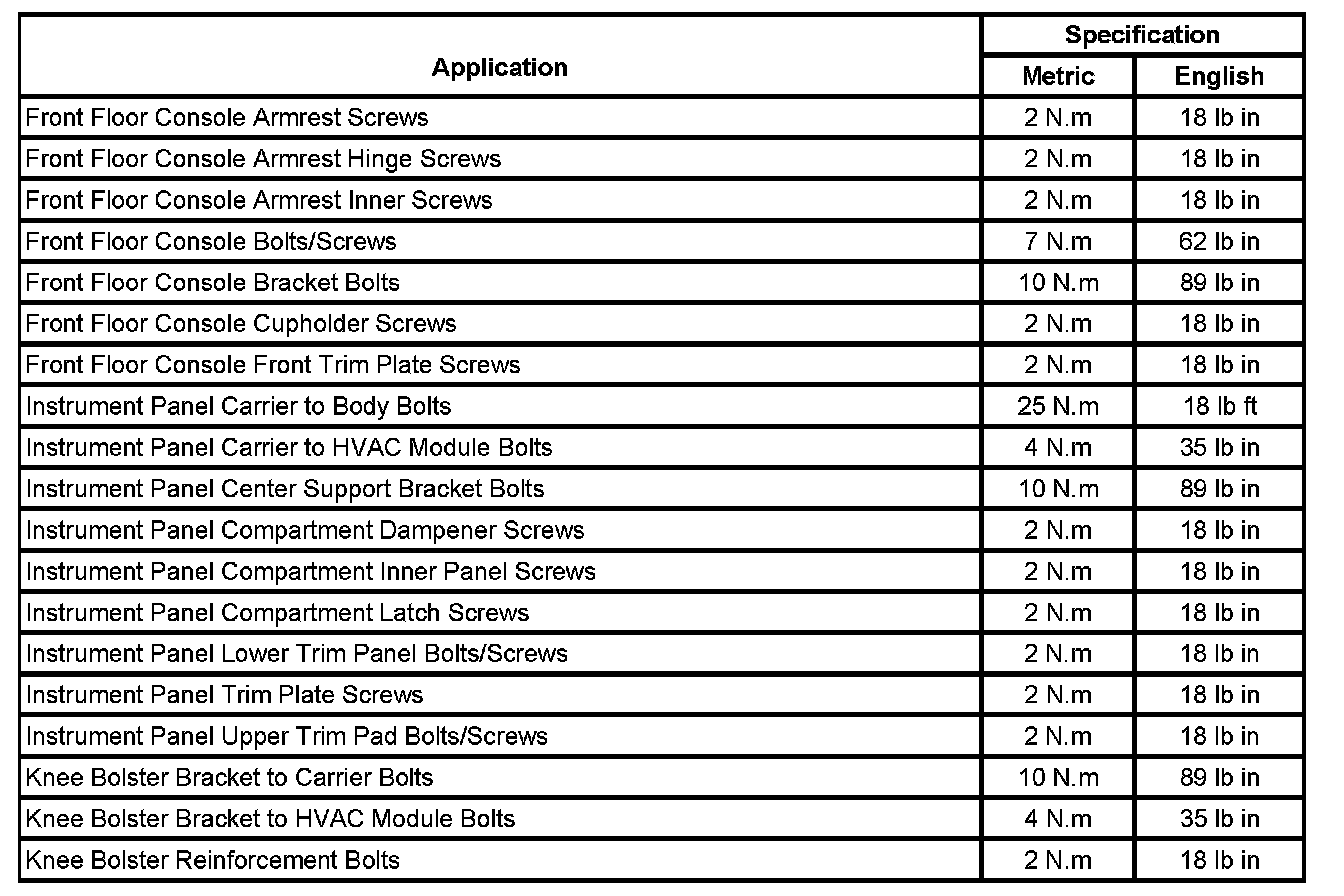 Fastener Tightening Specifications