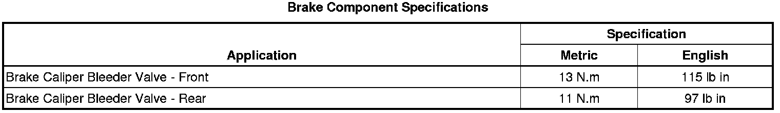 Brake Component Specifications