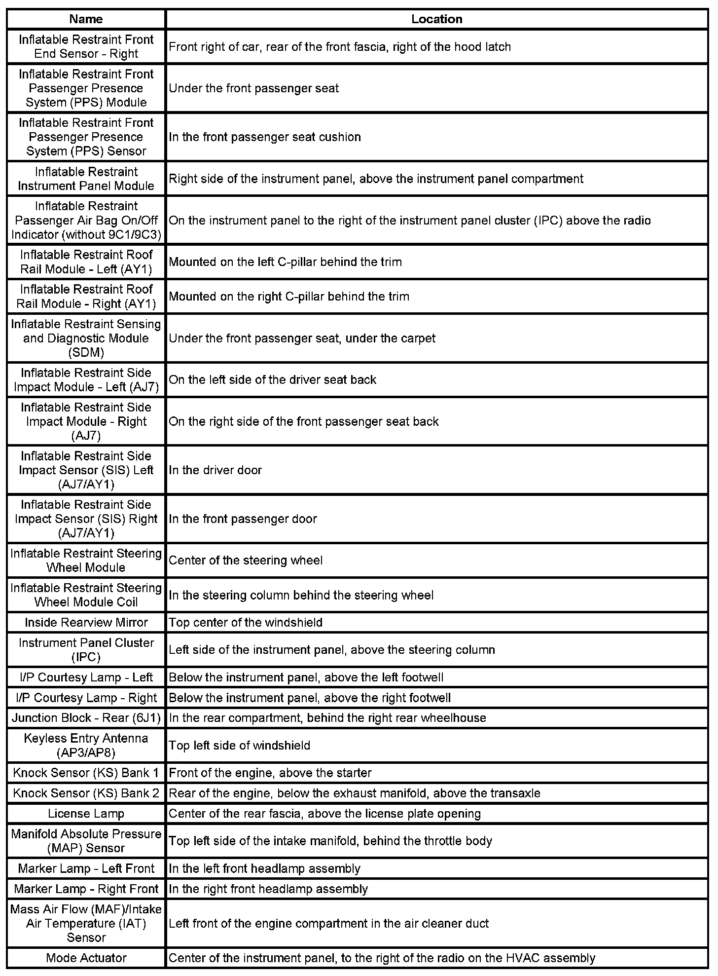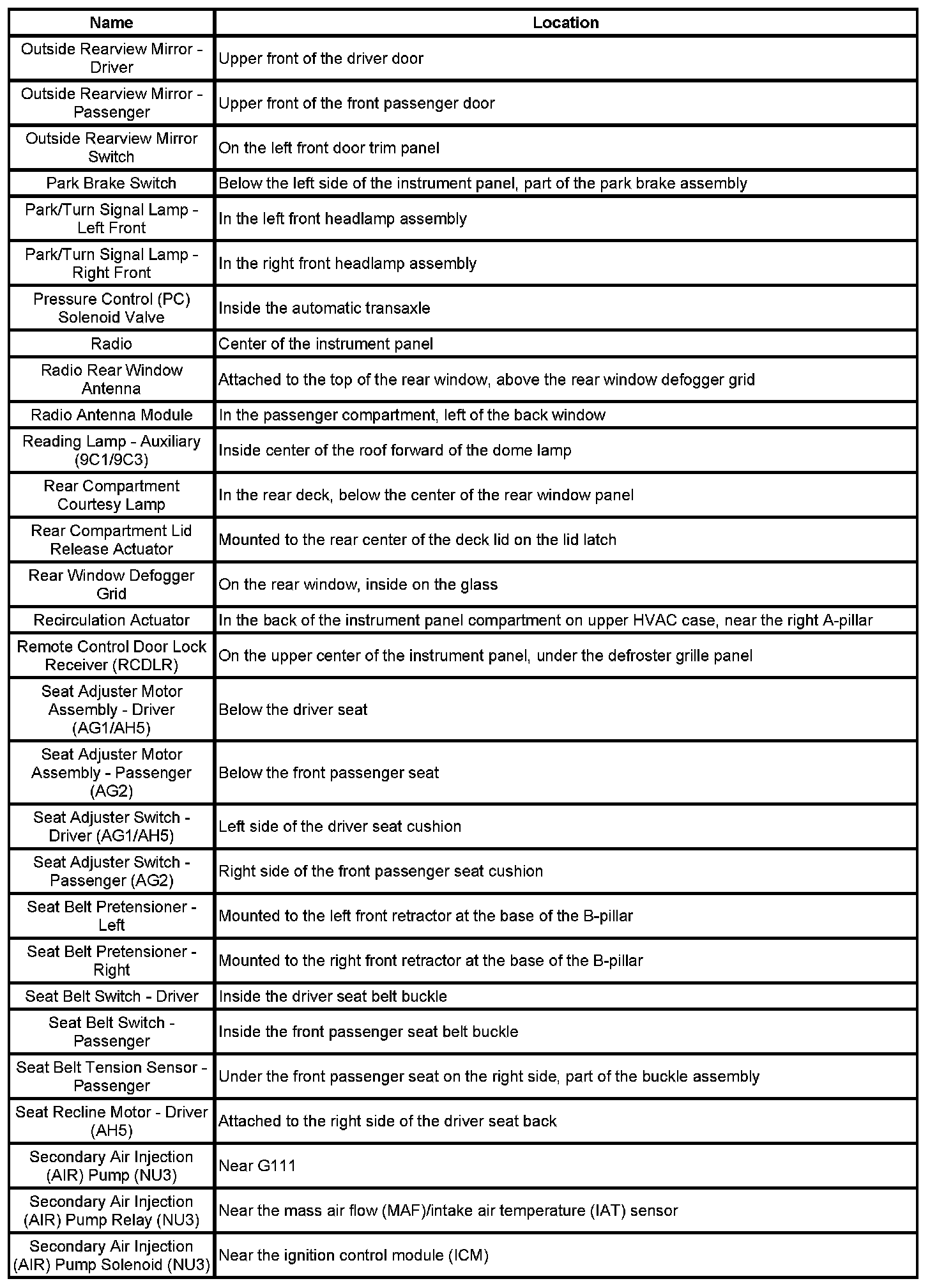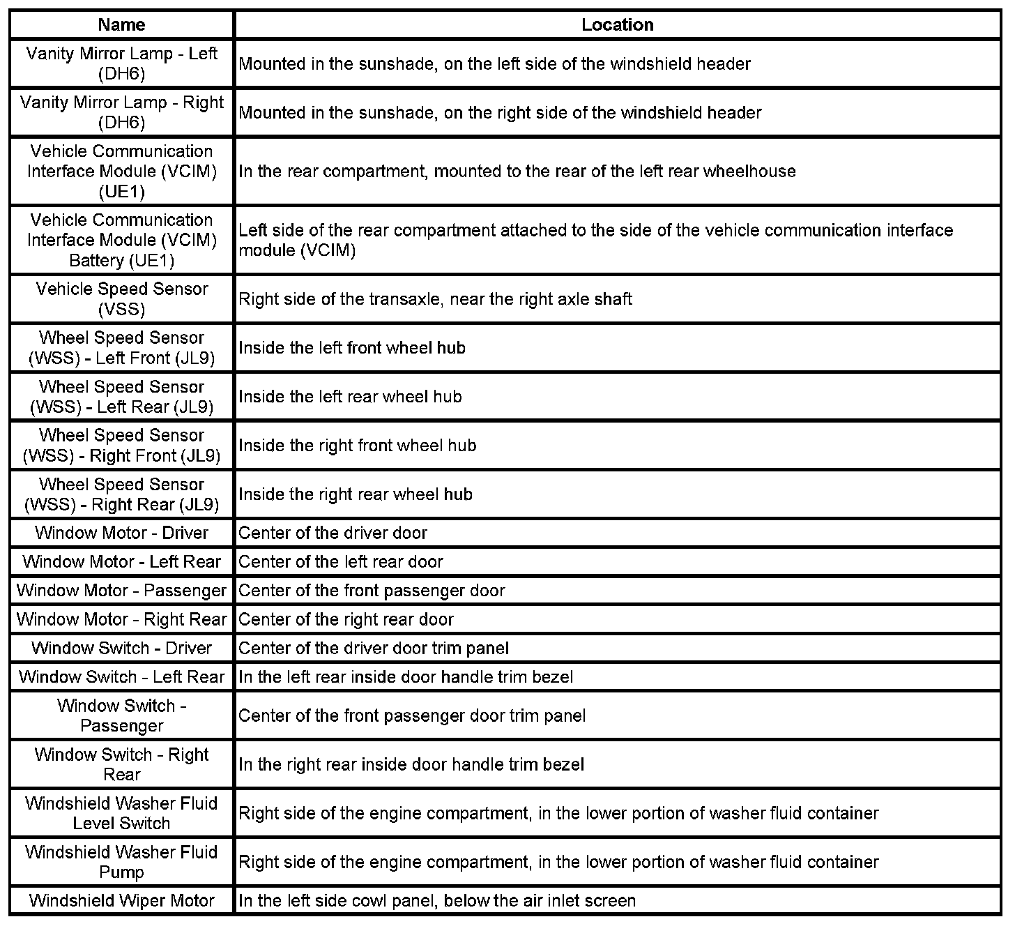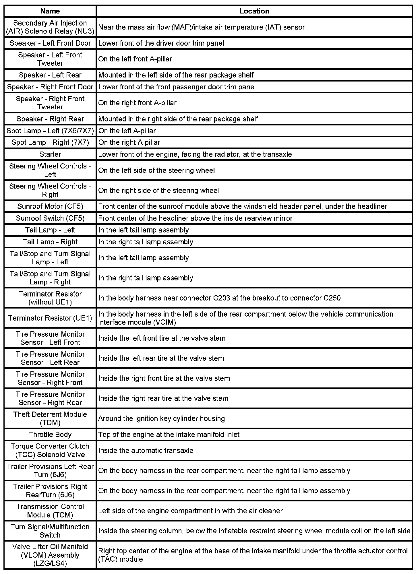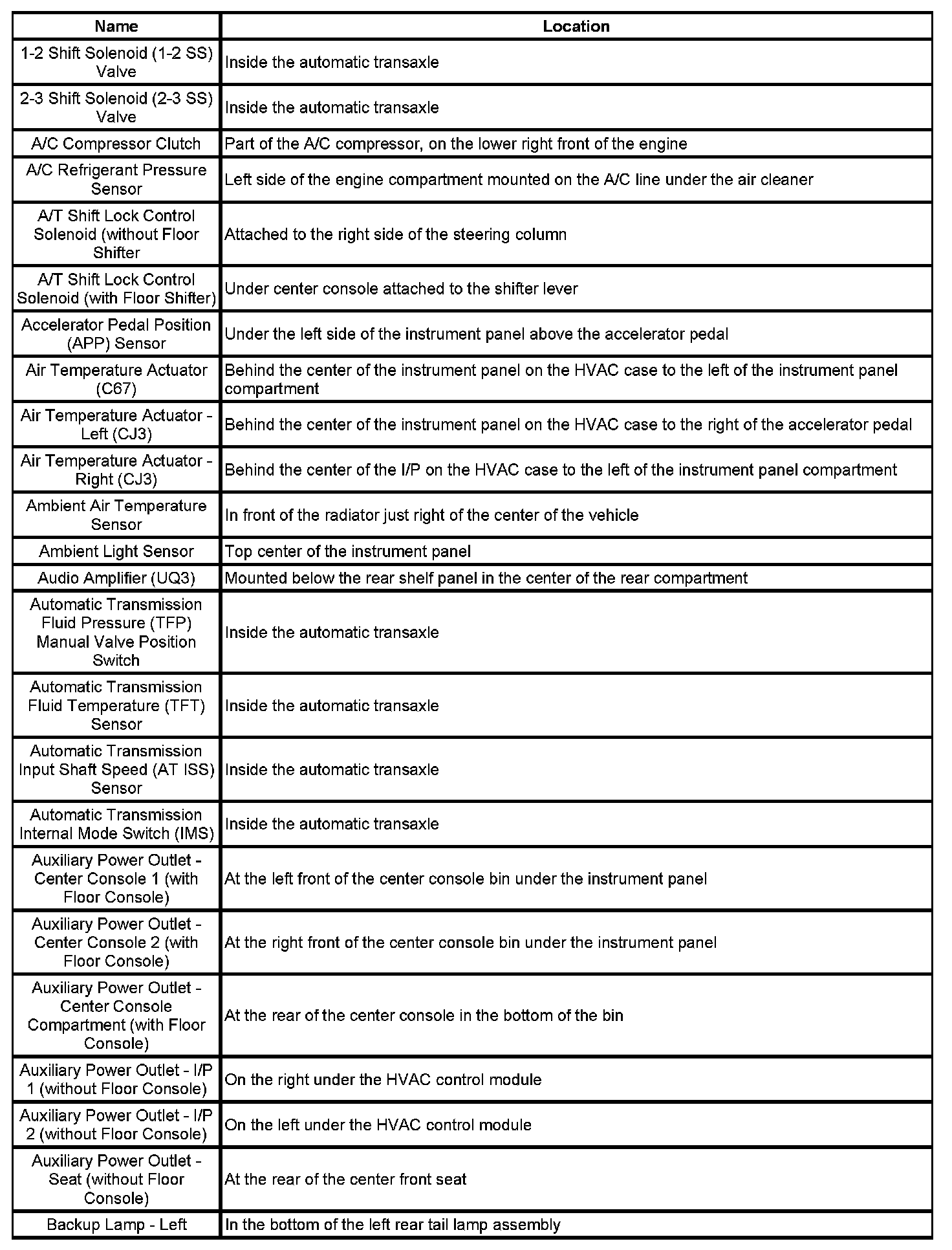 Master Electrical Component List