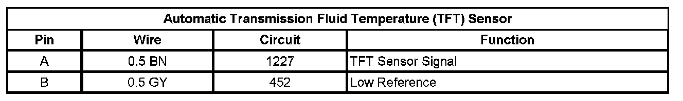 Automatic Transmission Fluid Temperature (TFT) Sensor